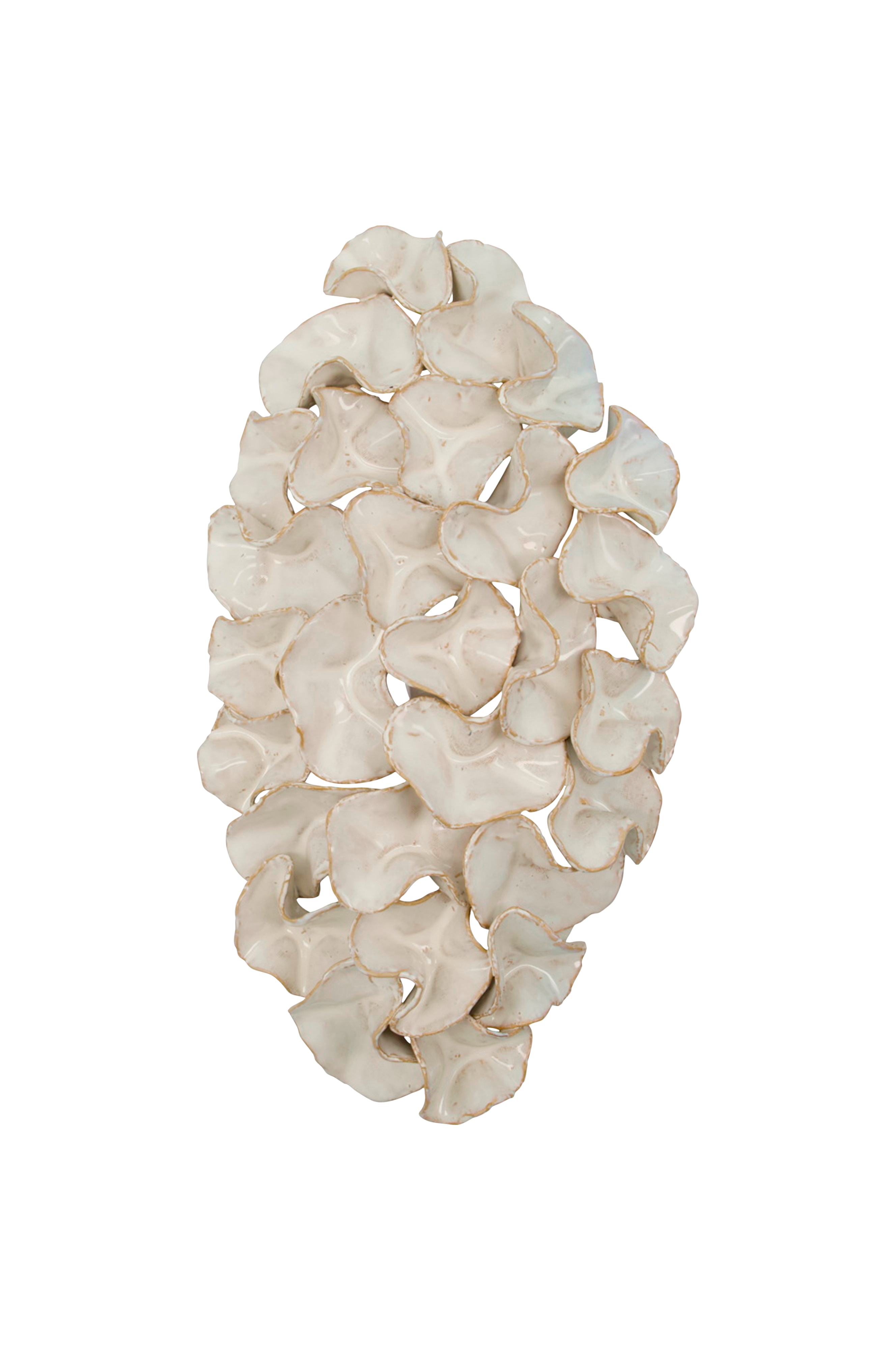 Denna väggdekoration ger ditt hem en modern prägel med sin handgjorda design i benvitt stengods. Vikta, runda cirklar bildar organiska former som fångar ögat och väcker kreativiteten. Häng den ensam för en subtil effekt eller kombinera den med andra dekorationer för en slående effekt i vardagsrummet, hallen eller sovrummet.
