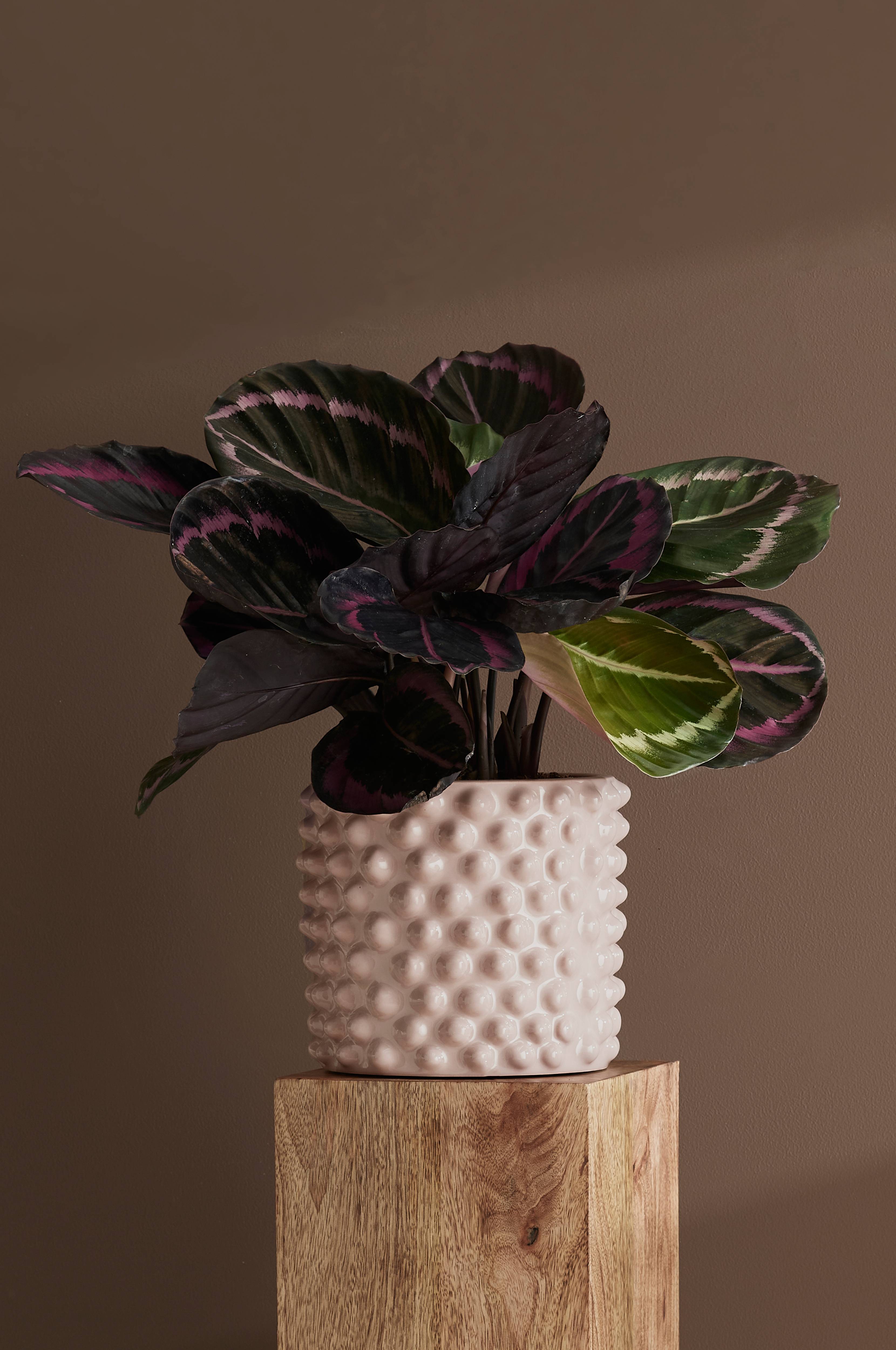 Lättskött växt med mörka blad, mönstrade i purpur. Trivs i ljust-halvskuggigt läge, undvik direkt sol. Håll jorden lätt fuktig, men ej blöt. Innerkruka i plast, diameter 14 cm.