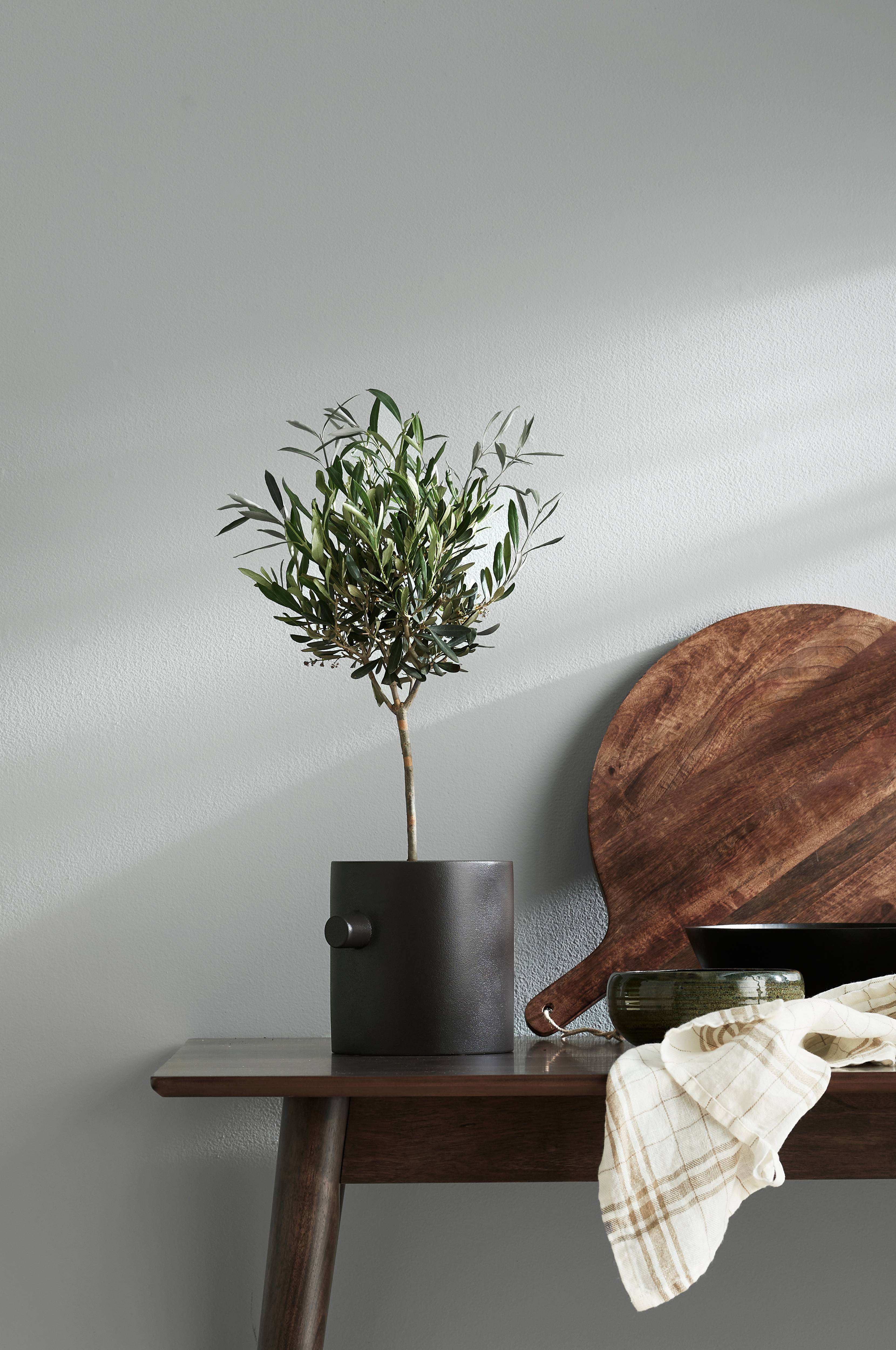 Det klassiska trädet ger en stark känsla av Medelhavets varma vindar och är en favorit både på uteplatser och i uterum. Trädet trivs i sol-halvskugga i väldränerad jord, gärna utomhus sommartid. Innerkruka i plast, diameter 15 cm.