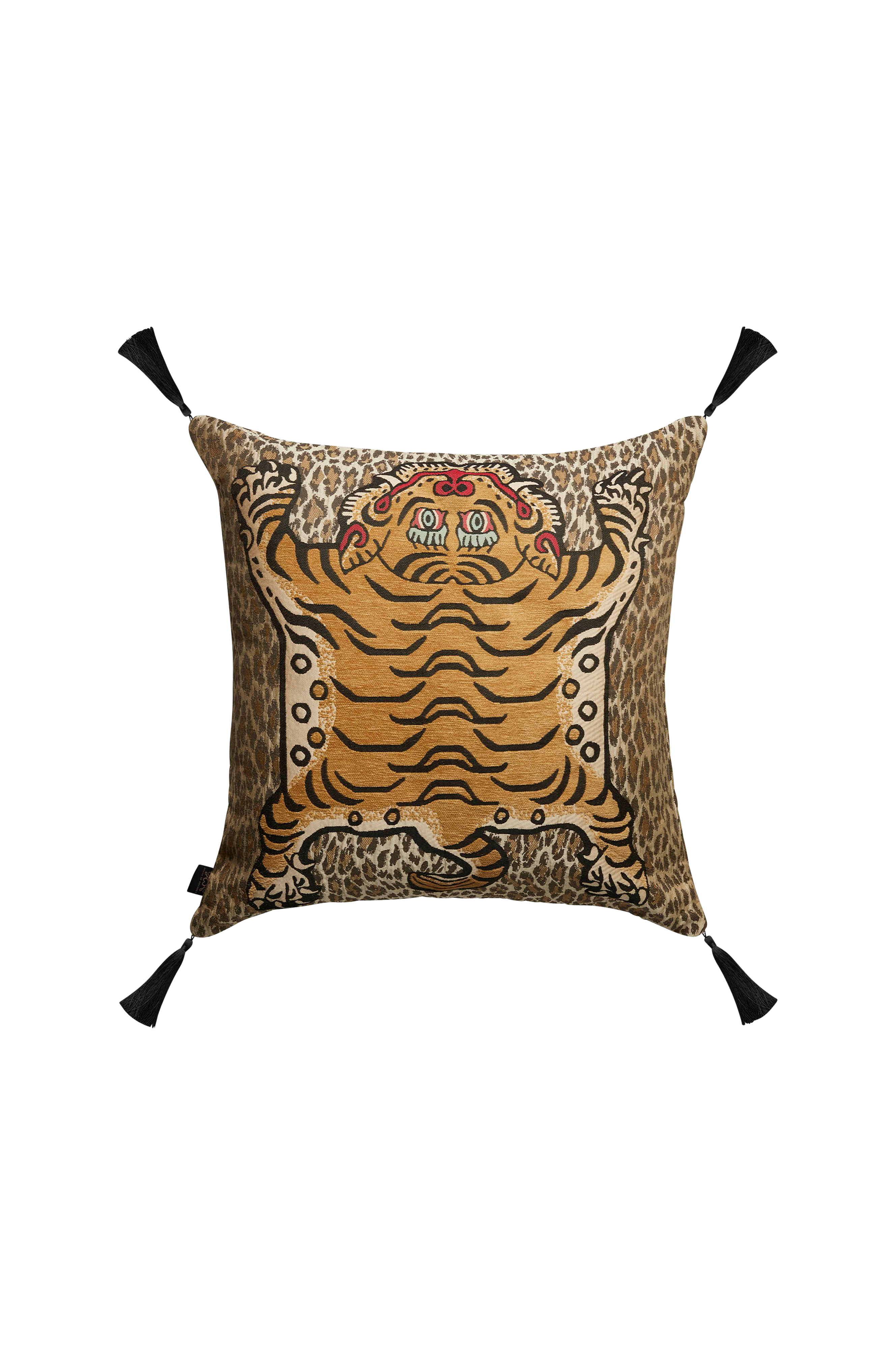 Denna kudde kombinerar två av våra favoritsaker: vår husikon, tigern SABER och leopardmönstret WILD CARD. Tillverkad i Storbritannien av len jacquardväv - ett karaktäristiskt tyg som hyllar den traditionella metoden att tillverka textilier i neutrala Butterscotch-färger som på ett naturligt och vackert sätt blandas med alla inredningsstilar eller kombinationer av kuddar. Det är verkligen coolt. 100% jacquardvävd bomull