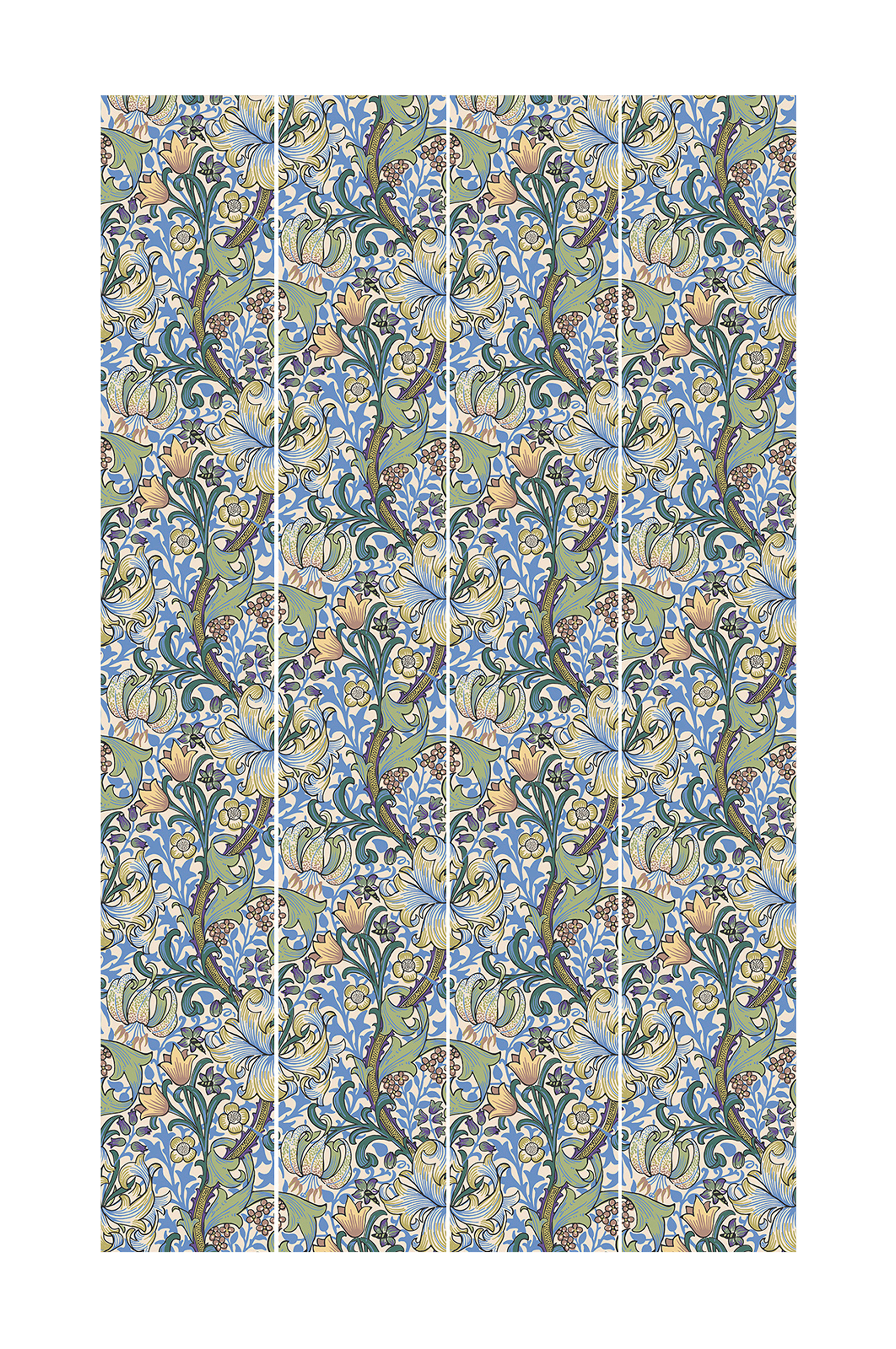 Res i tiden med William Morris tryck Golden Lily som är livfullt omarbetat i våra lyxiga, hållbara, blommiga tapeter i blått och grönt. Bredd 180 cm, höjd 300 cm