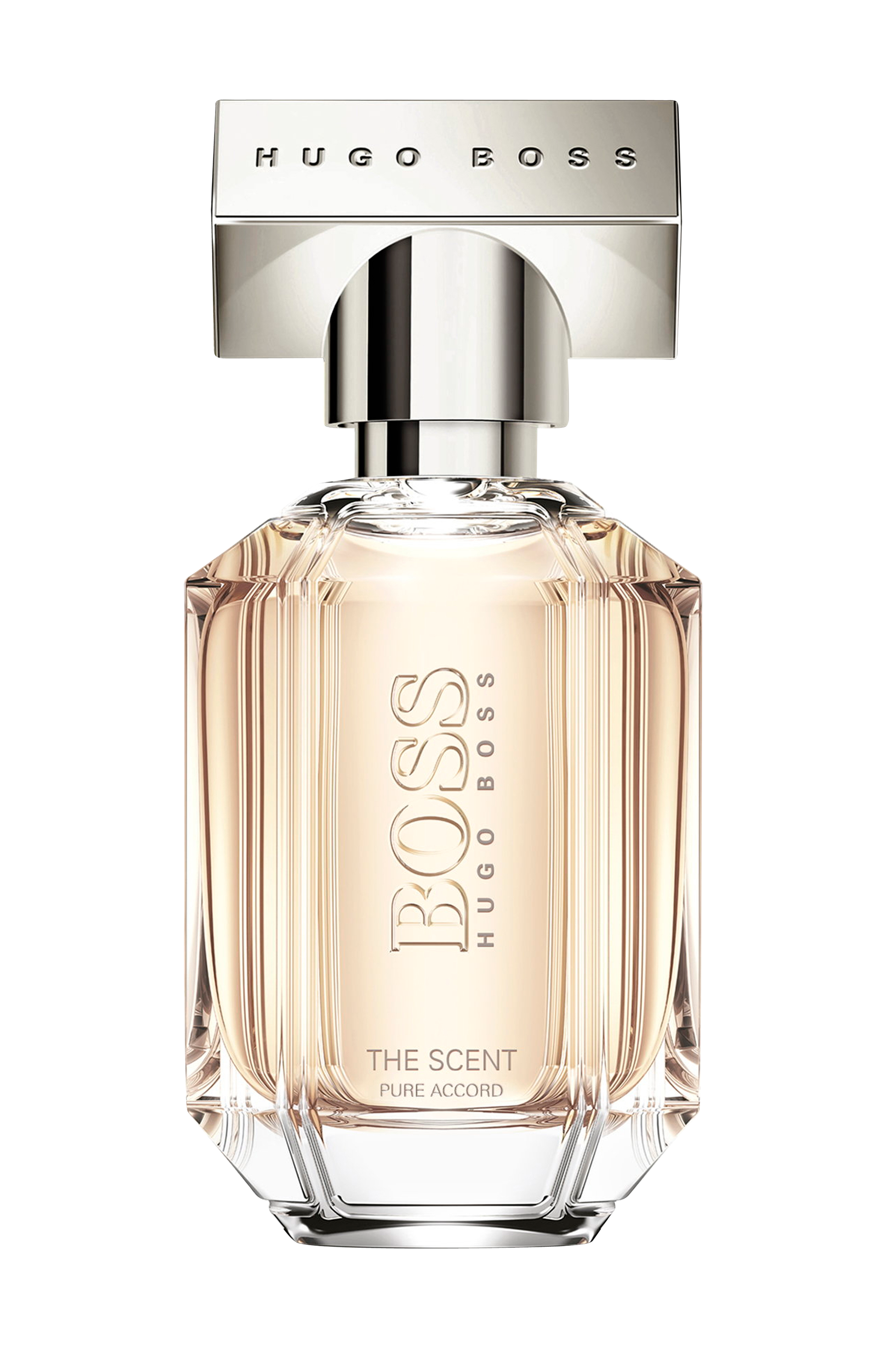The Scent Pure Accord är en strålande doftduo som nytolkar förförelsens konst som för Boss-mannen och kvinnan närmare varandra. Parfymen är en förtrollande fortsättning på en sensuell berättelse om samhörighet och intimitet. Boss The Scent Pure Accord For Her glittrar med toppnoter av bergamott och skimrande hjärtnoter av sensuell osmanthusblomma. En myskdoftande bas fulländar doften och förenar mjukhet och styrka på ett mjukt och balanserat sätt. Förpackningens och parfymflaskans design speglar doftens feminina utstrålning med en ljust persikofärgad parfym innesluten i en glasflaska toppad med en ljus champagnekåpa.