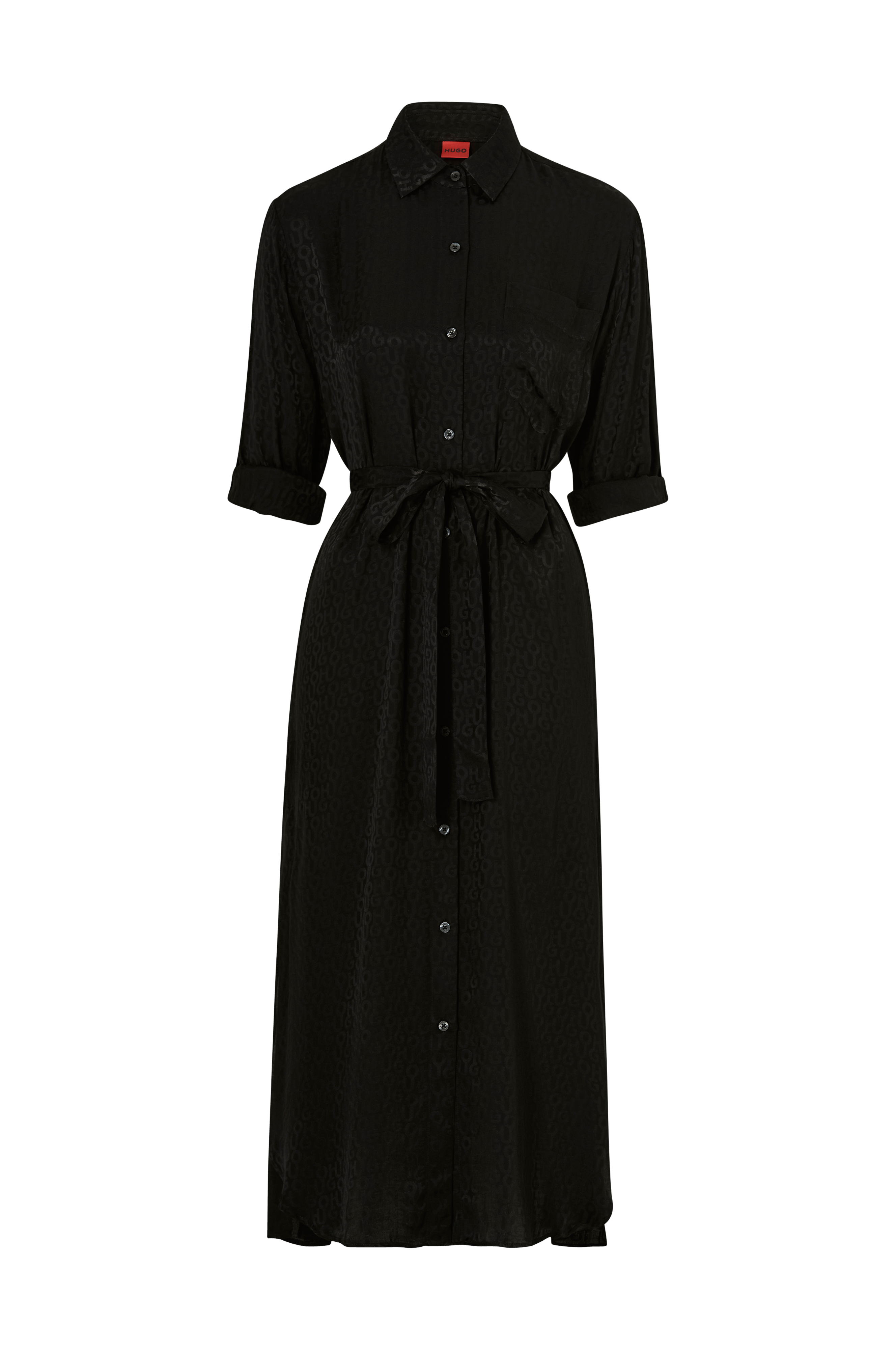 • Lång, utsvängd modell• Liten krage• Knäppning hela vägen fram• En bröstficka• Lång ärm med manschett och invändig tamp• Knytskärp• Sprund nedtill i sidorna• Längd: 127 cm i storlek 36