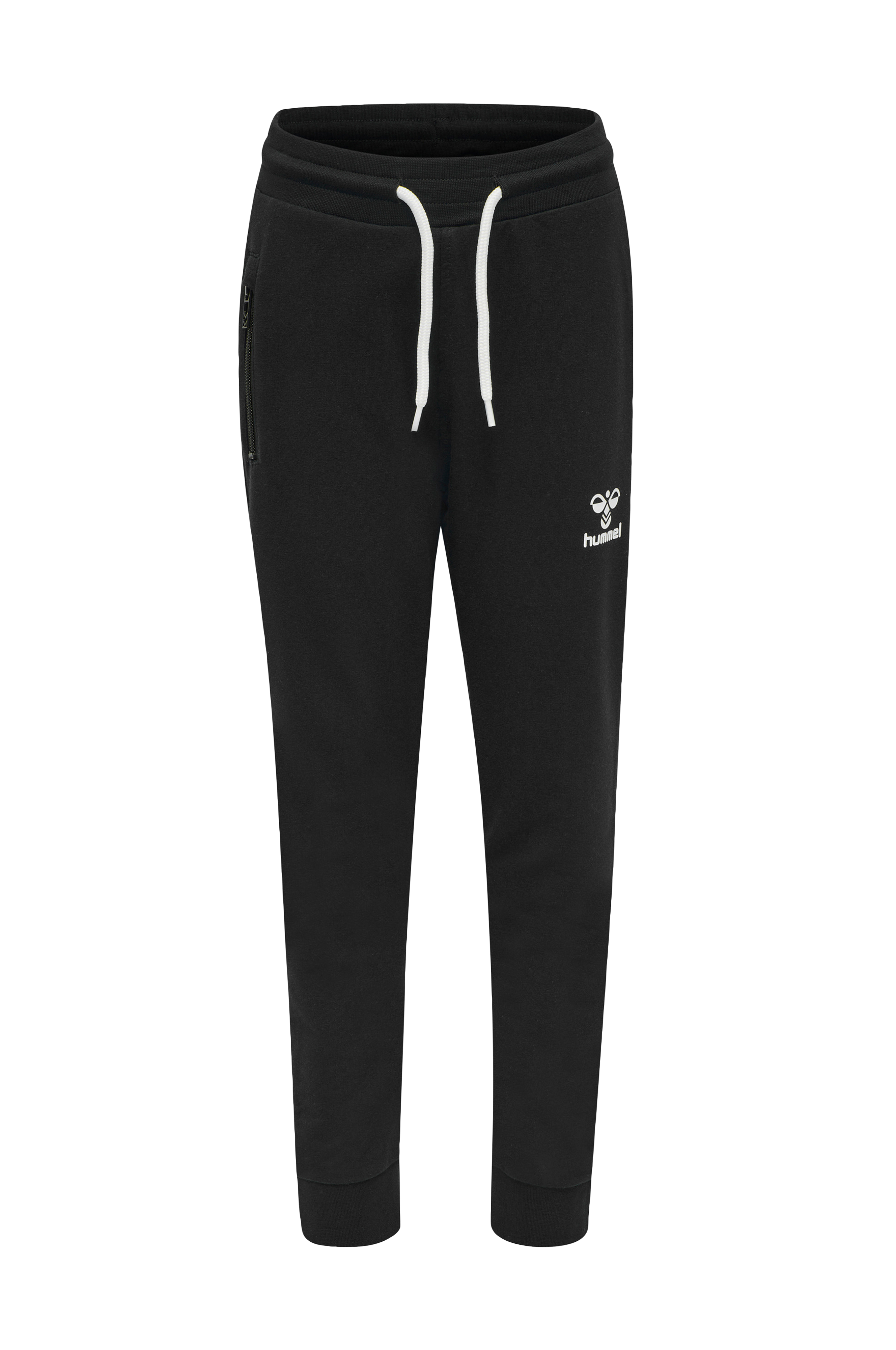 Joggingbyxor i tunn, skön sweatkvalitet. Elastisk midja med dragsko, logotryck fram och en sidficka med dragkedja. Mudd i bensluten.
