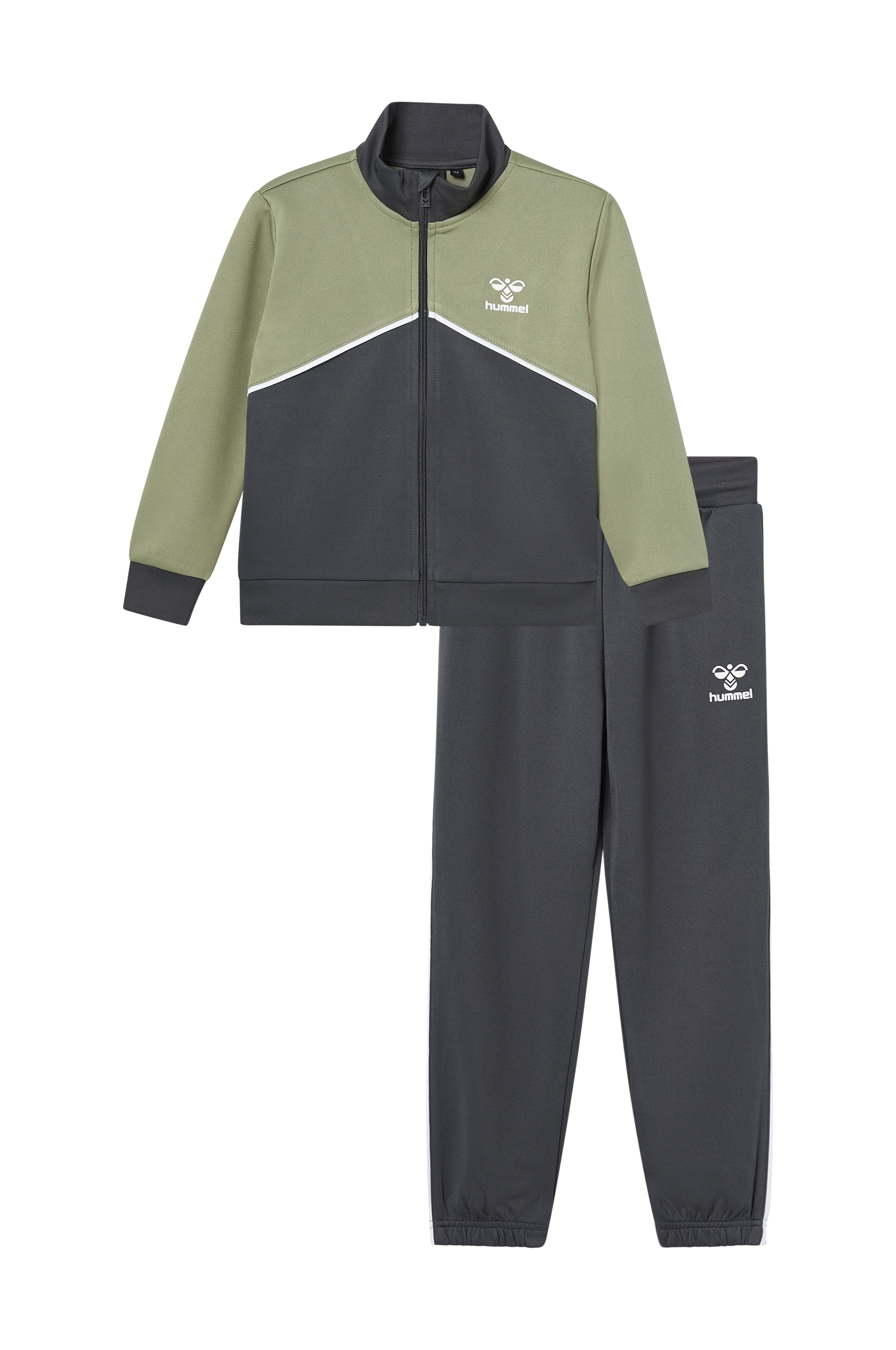 • Träningsset gjort i ett dubbelstickat interlocktyg• Jacka med ribbad krage och dragkedja• Ribbmuddar i ärmsluten och nedtill• Byxor med elastisk midja och dragsko• Resår i bensluten