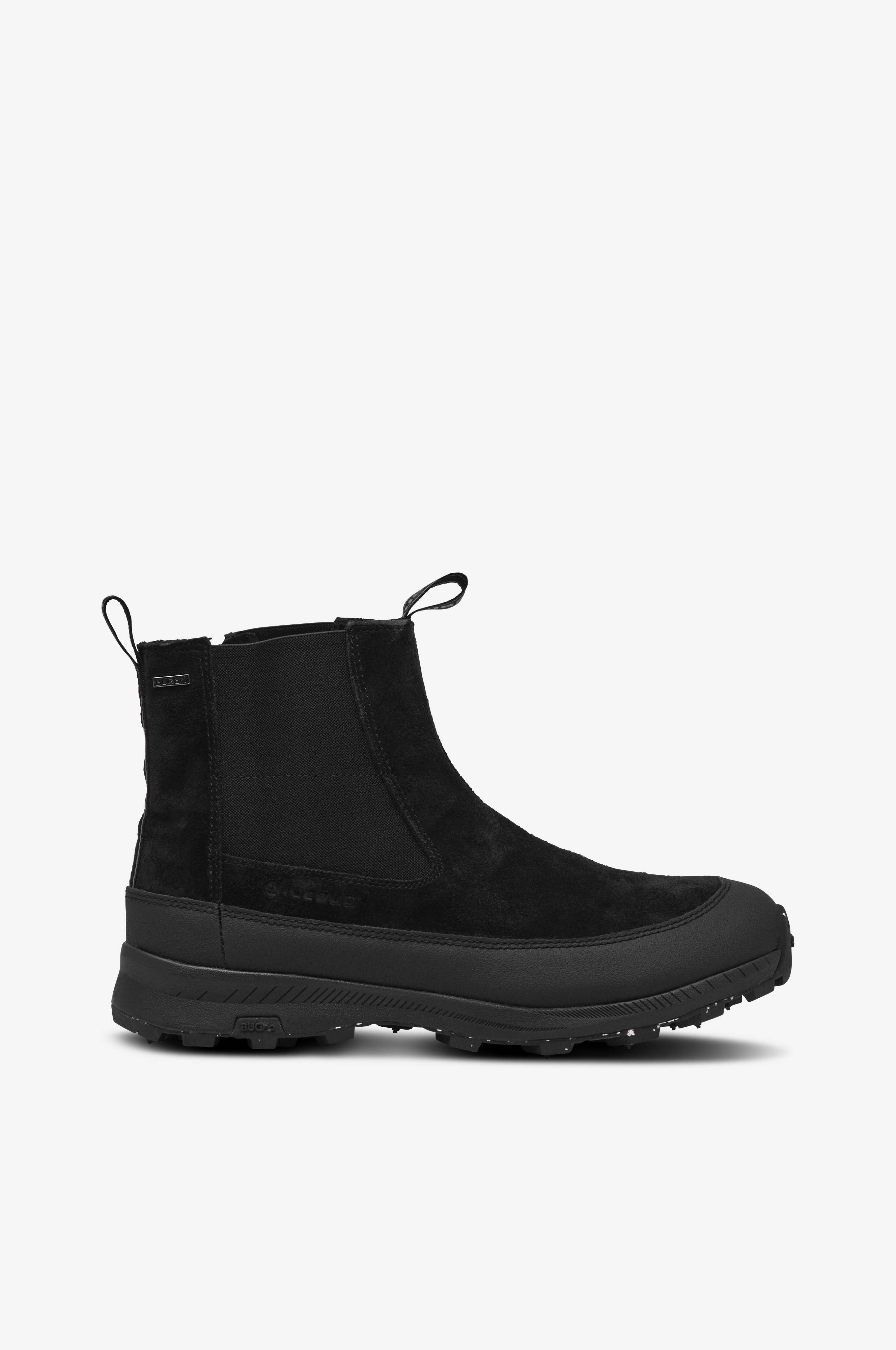 • Ovandel i vattenavvisande mocka • Skyddande, tålig förstärkning runt om foten • Värmande teddyfoder • Resårpaneler på skaftets båda sidor • Dragkedja på insidan av skaftet • Vävda draghällor baktill och framtill • Uttagbar innersula i filtad ull • Greppsäker yttersula i gummi med 17 BUGrip-dubbar