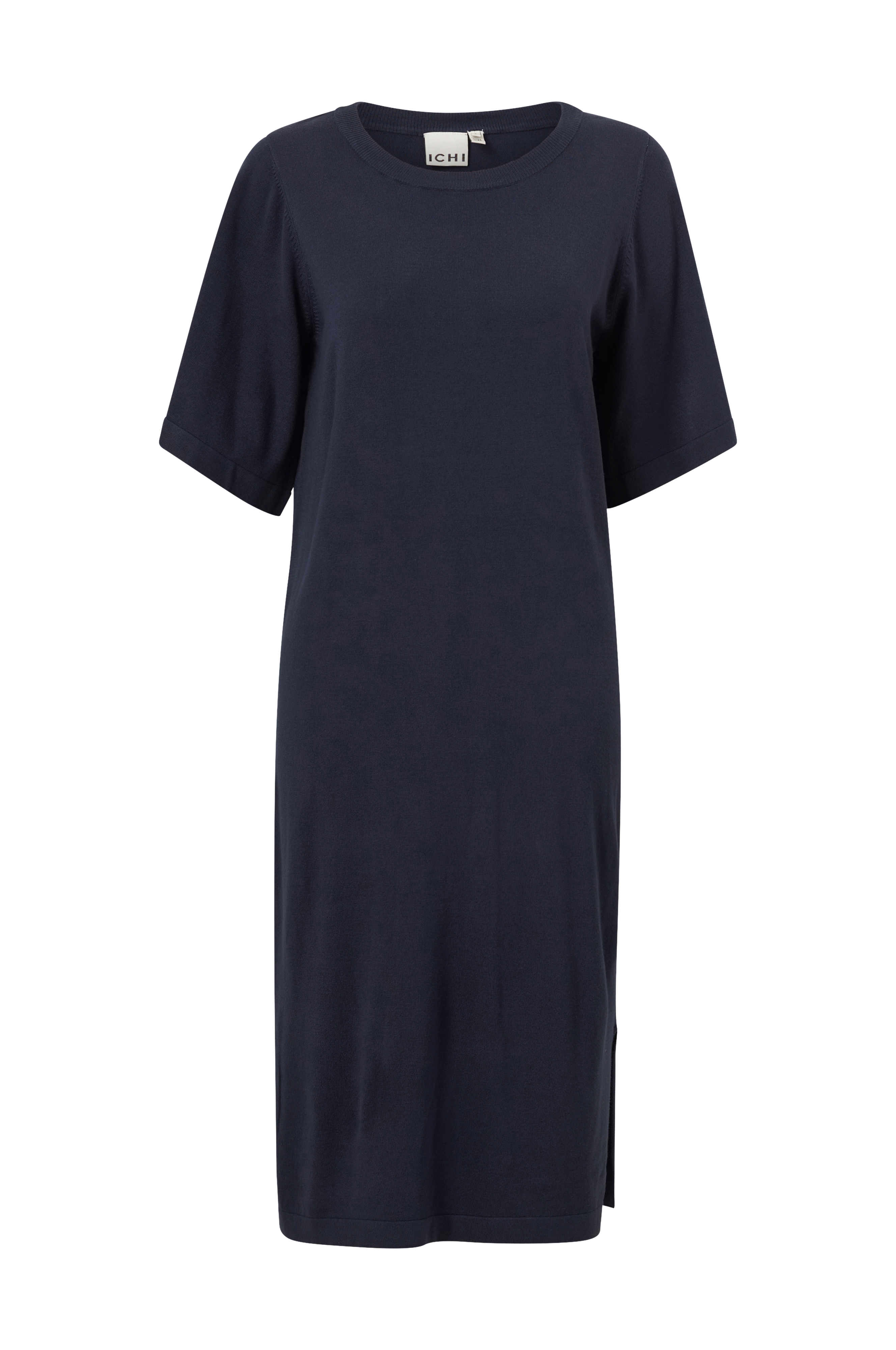 Finstickad klänning i viskosblandning. Rund, ribbad halsringning och korta ärmar. Slitsar nedtill i sidorna. Längd ca 108 cm i stl S.