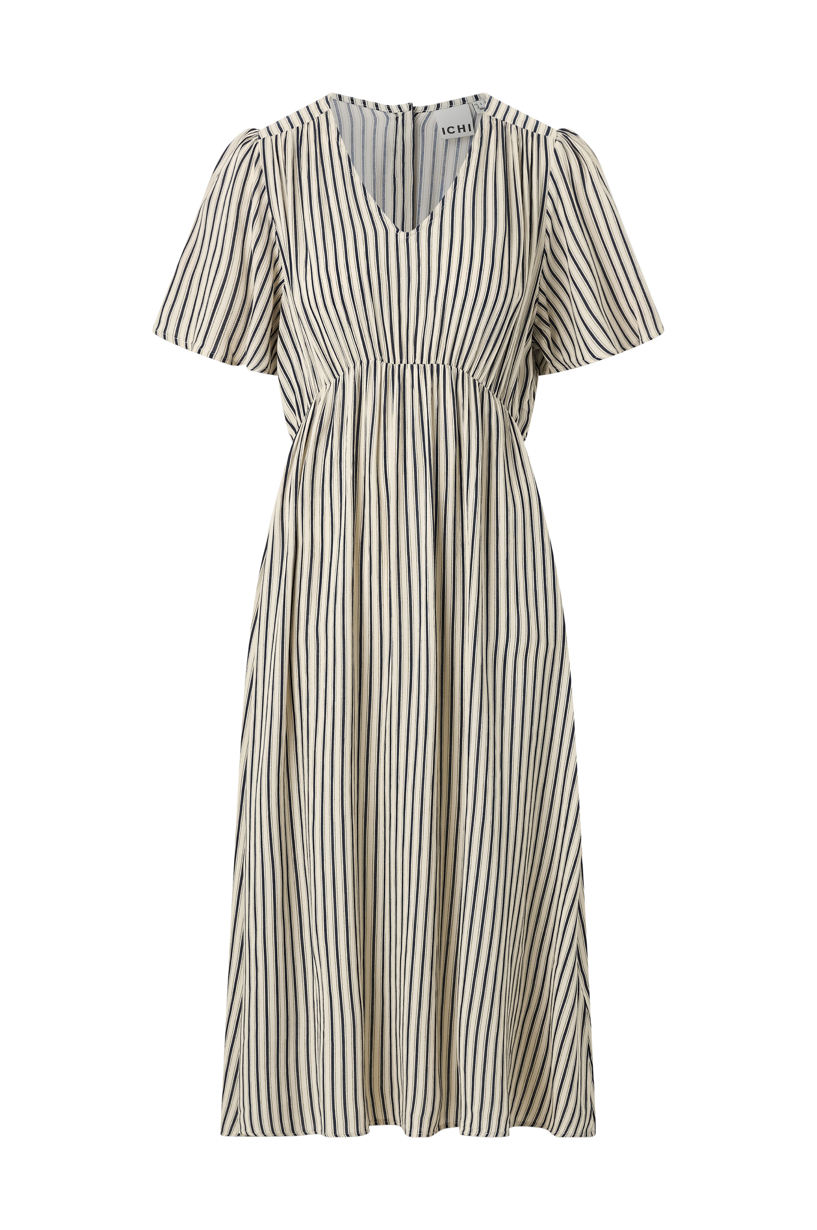 • Klänning i viskos• V-ringning• Korta, vida ärmar• Elastisk midja• Klädda knappar i ryggen• Längd: 118 cm i storlek S