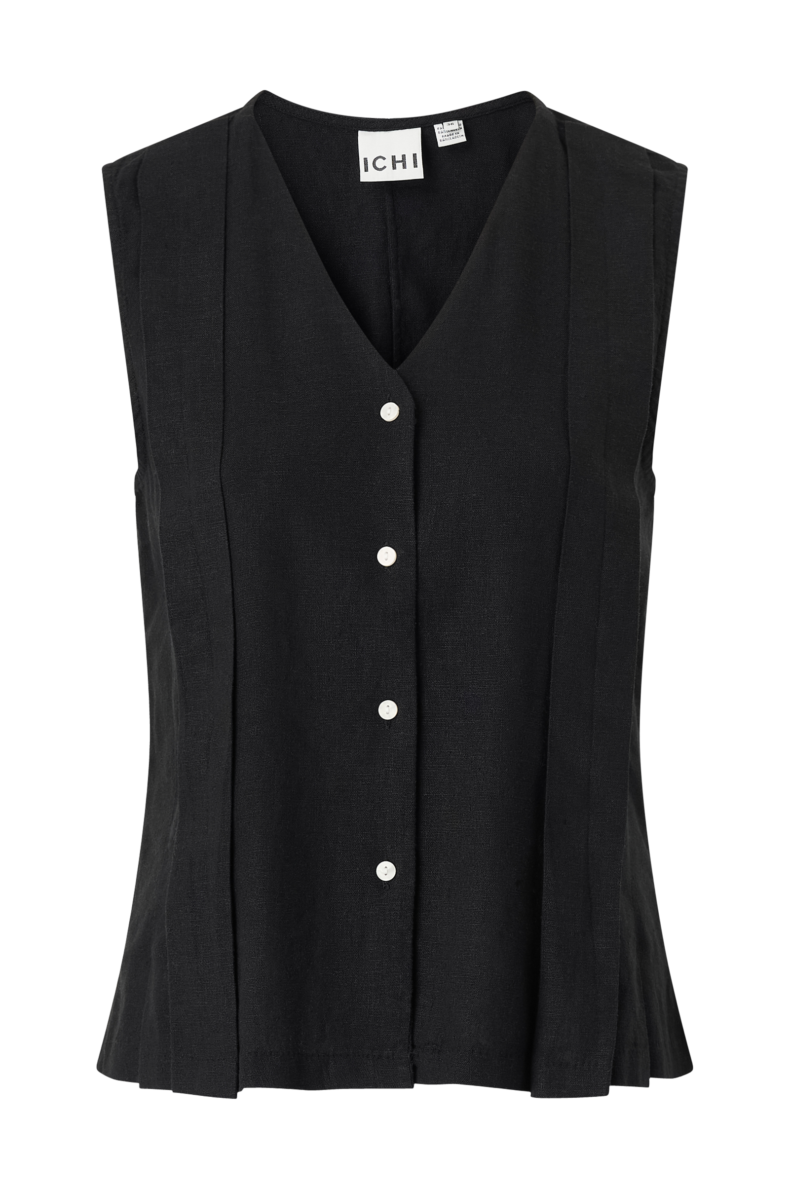 • Ärmlös blus i linnemix• V-ringad hals• Knappar fram
