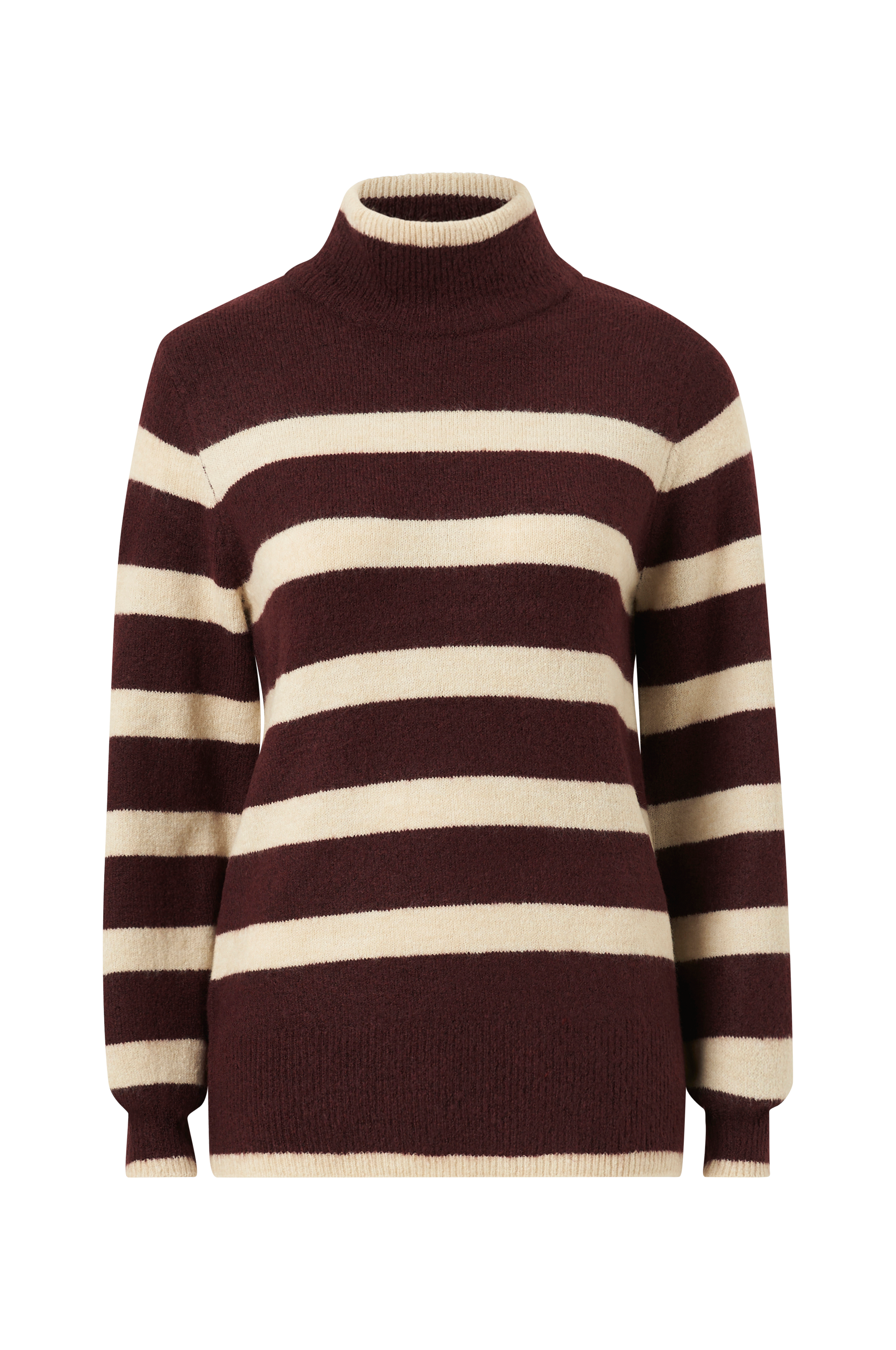 • Modell med stickade ränder• Hög, ribbstickad krage• Bred ribbstickning i ärmsluten och i nederkanten