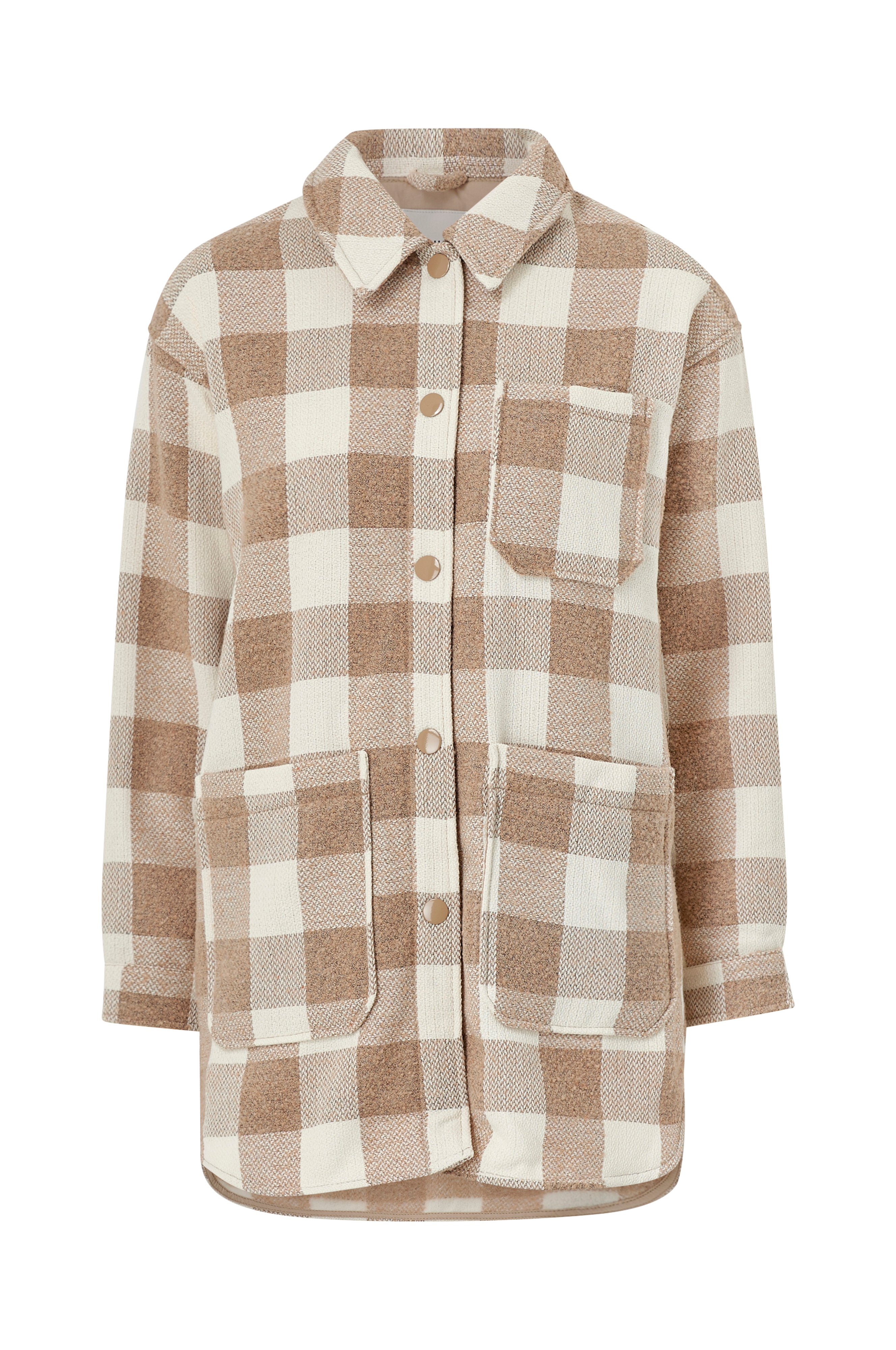 Rak oversizemodell med krage och stora tryckknappar hela vägen fram. En påsydd bröstficka och två stora fickor samt rundskuren nederkant och manschett i ärmslut. Längd ca 82 cm i stl S.