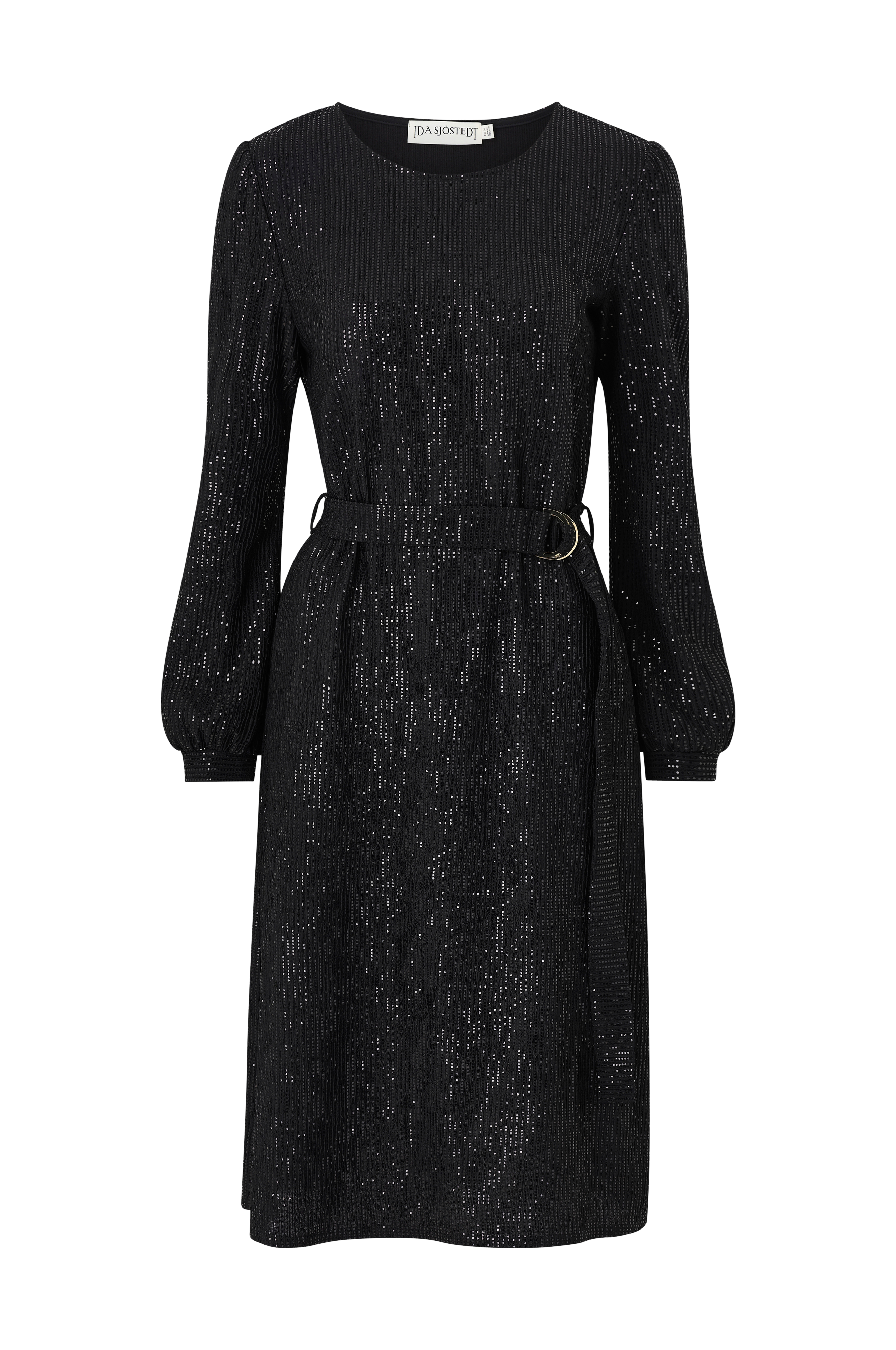 • Klänning med skimrande paljetter• Rund halsringning• Långa ärmar• Mudd i ärmsluten• Avtagbart midjebälte• Normal passform• Längd: 109 cm i storlek 36