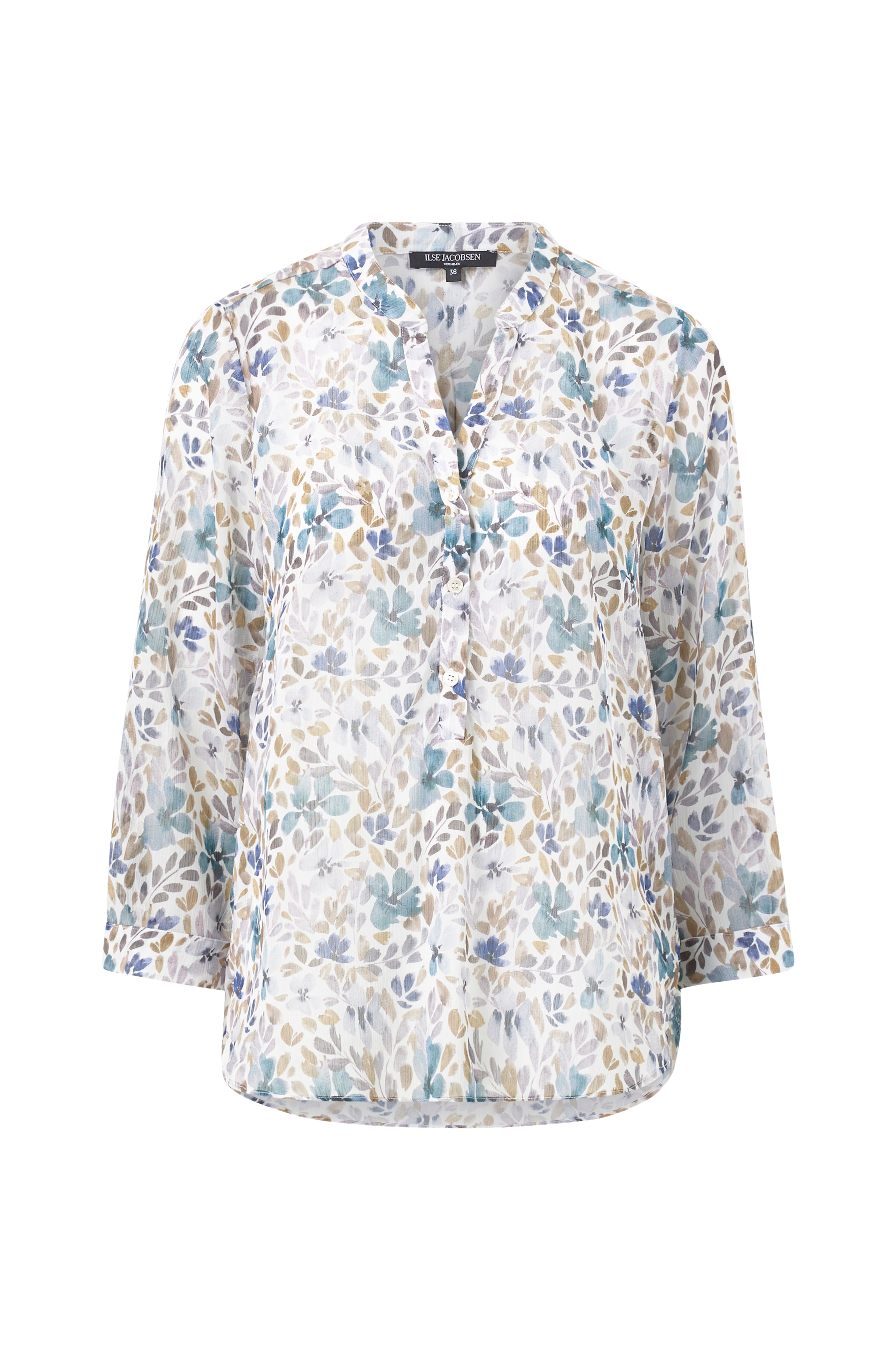 • Transparent blus i chiffong• V-ringning• Knappar fram• Lång ärm med knapp för upprullning