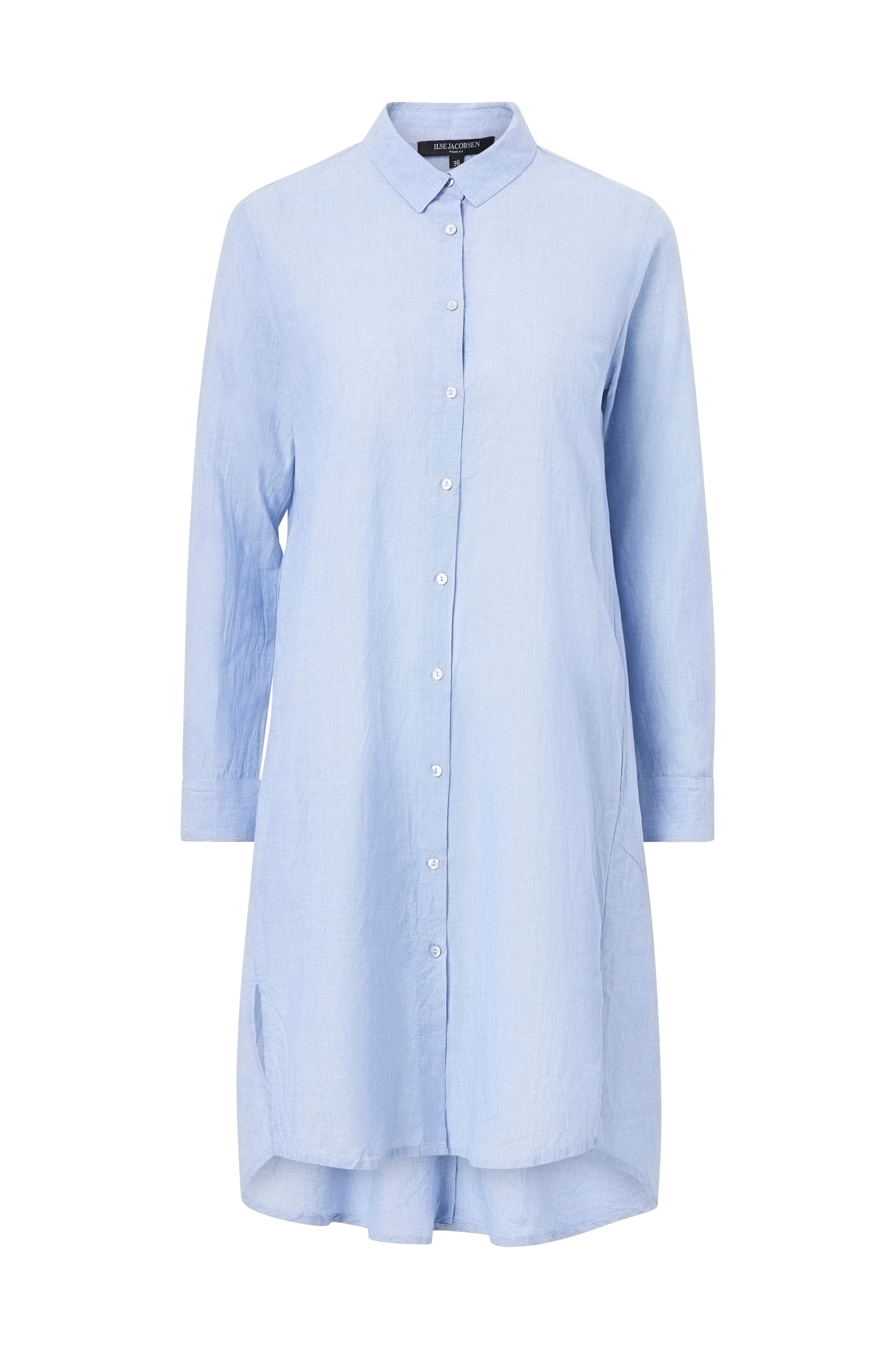 Långskjorta i vid oversizemodell med liten krage och knäppning hela vägen fram.