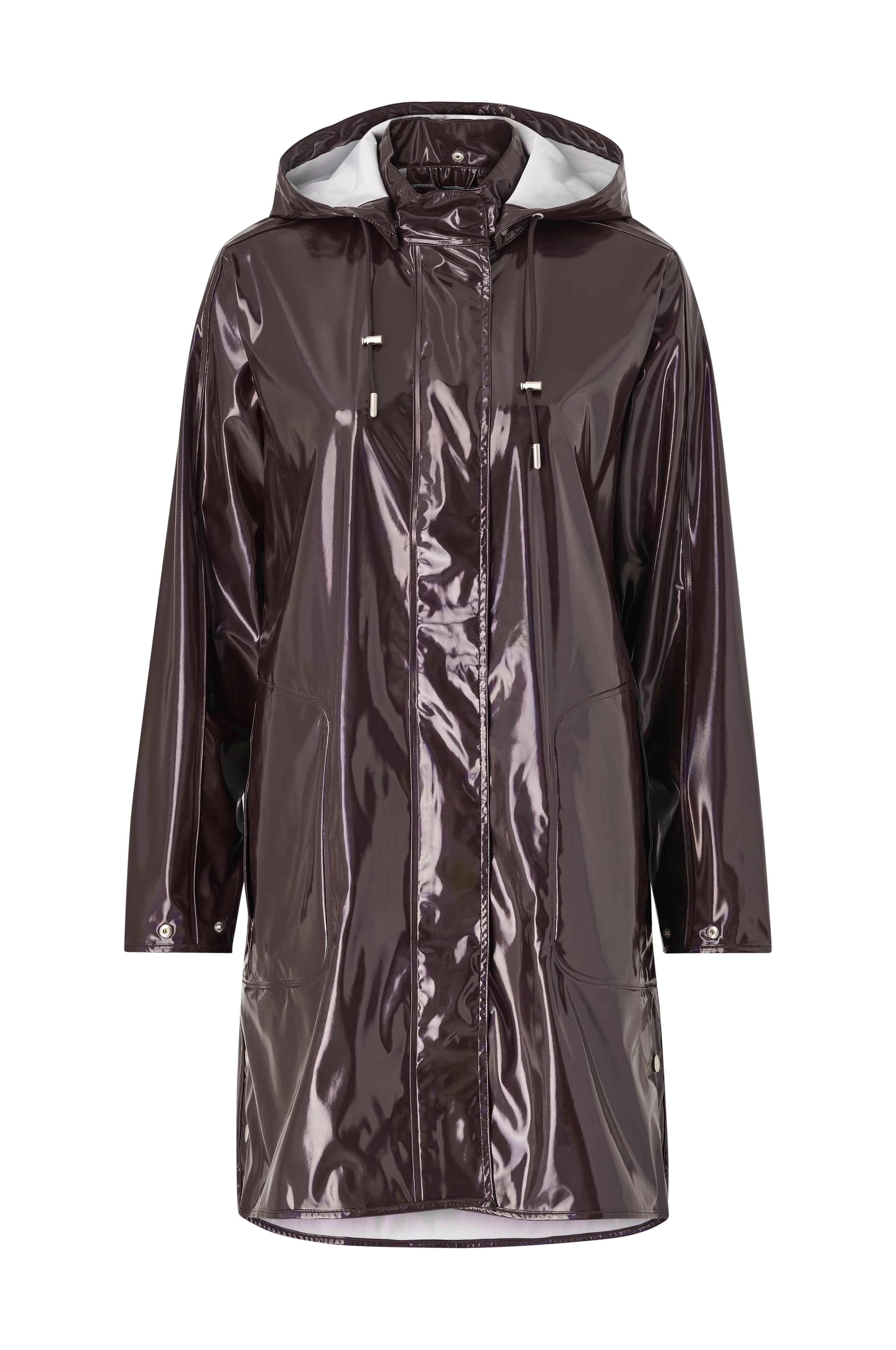 • Vattentät regnjacka i högblank PU • Svetsade sömmar • Avtagbar huva • Tvåvägs YKK-dragkedja • Vindslå över dragkedjan med tryckknappar • Två fickor • Justerbara ärmslut • Sprund nedtill i sidorna med tryckknappar • Vattenpelare: 3000 mm • Längd: 101 cm i storlek 36