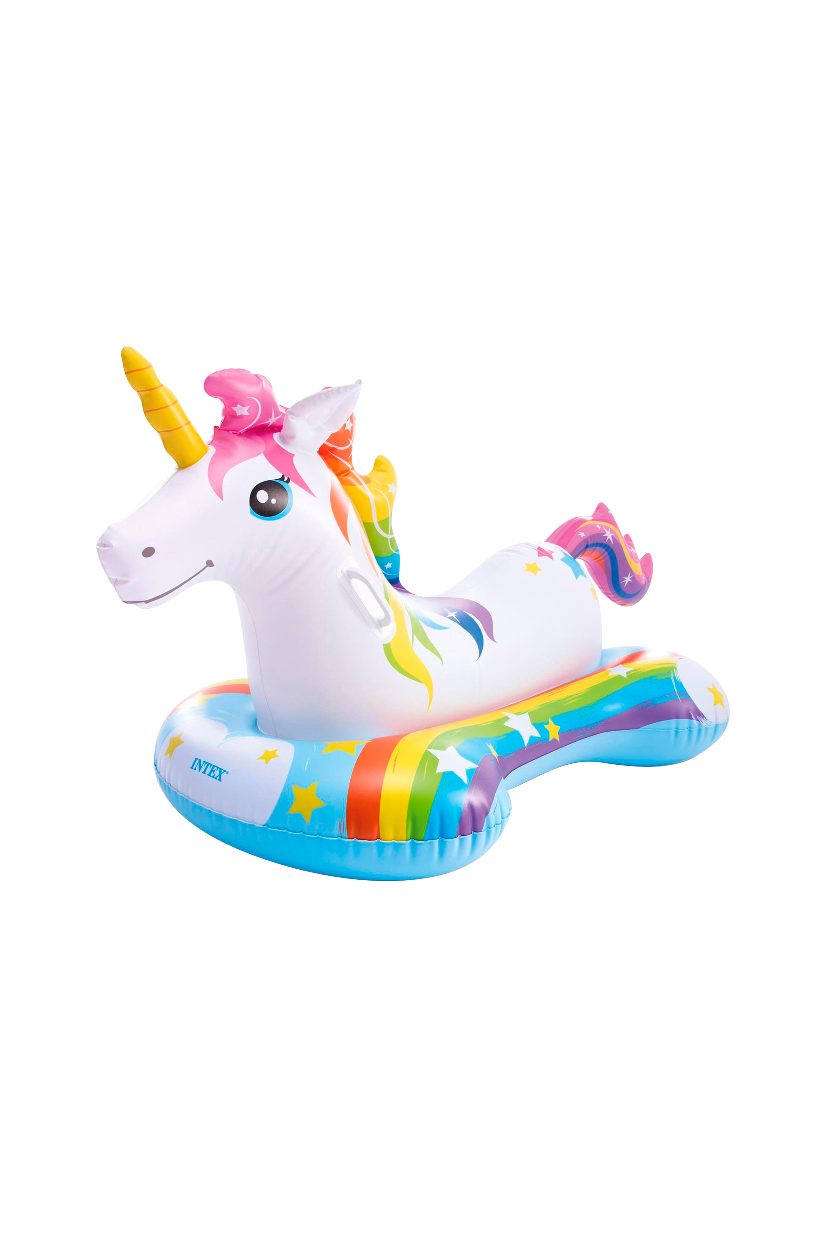 Den här badmadrassen med enhörningsdesign är avsedd för avkoppling en solig dag - i poolen eller på stranden
