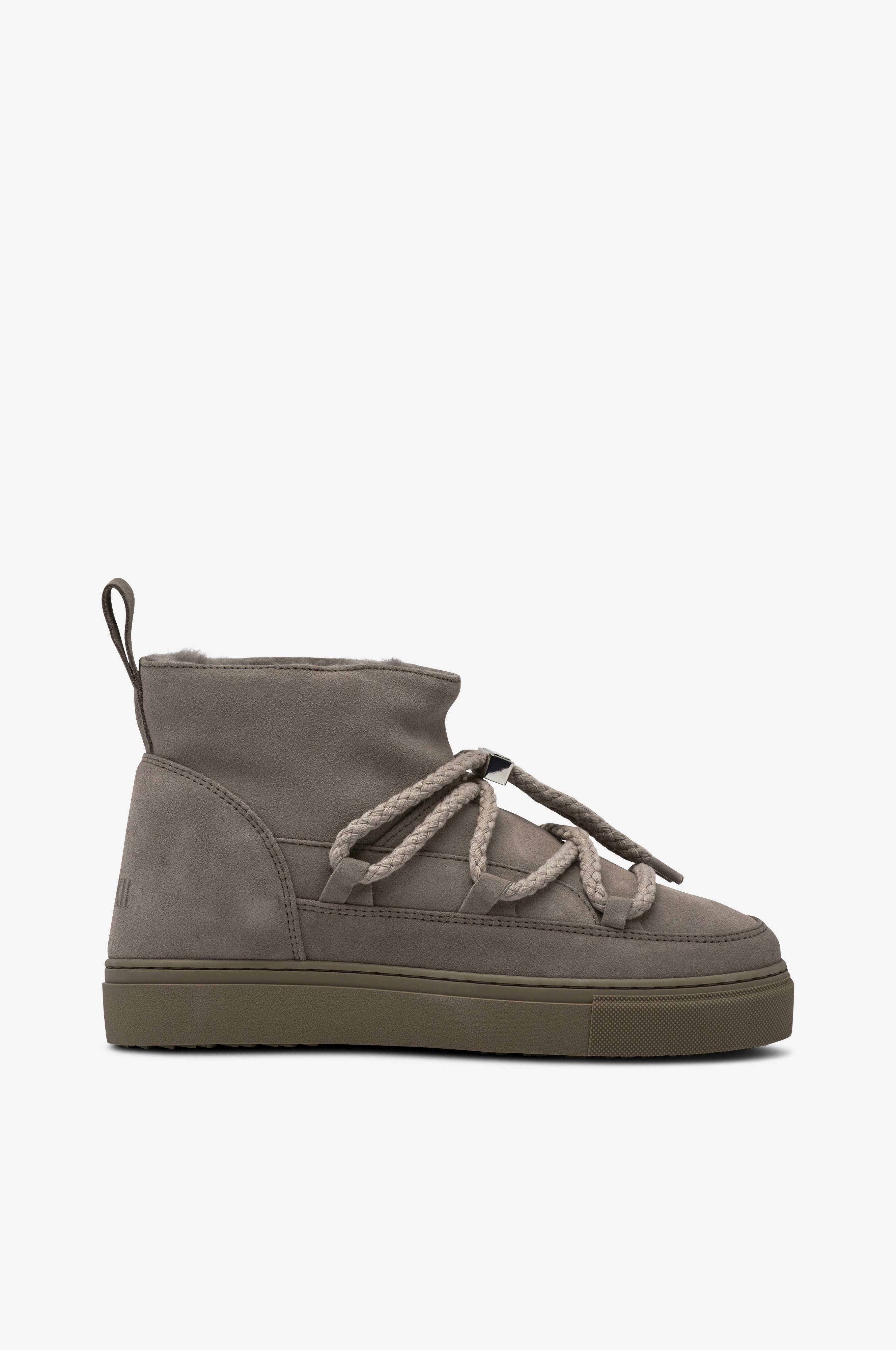 • Ovandel i mjuk mocka • Varmfoder i fårpäls • Snörning med stopper i guldfärgad metall • Broderad logga baktill • Yttersula i gummi • Skafthöjd: 11 cm i stl 37