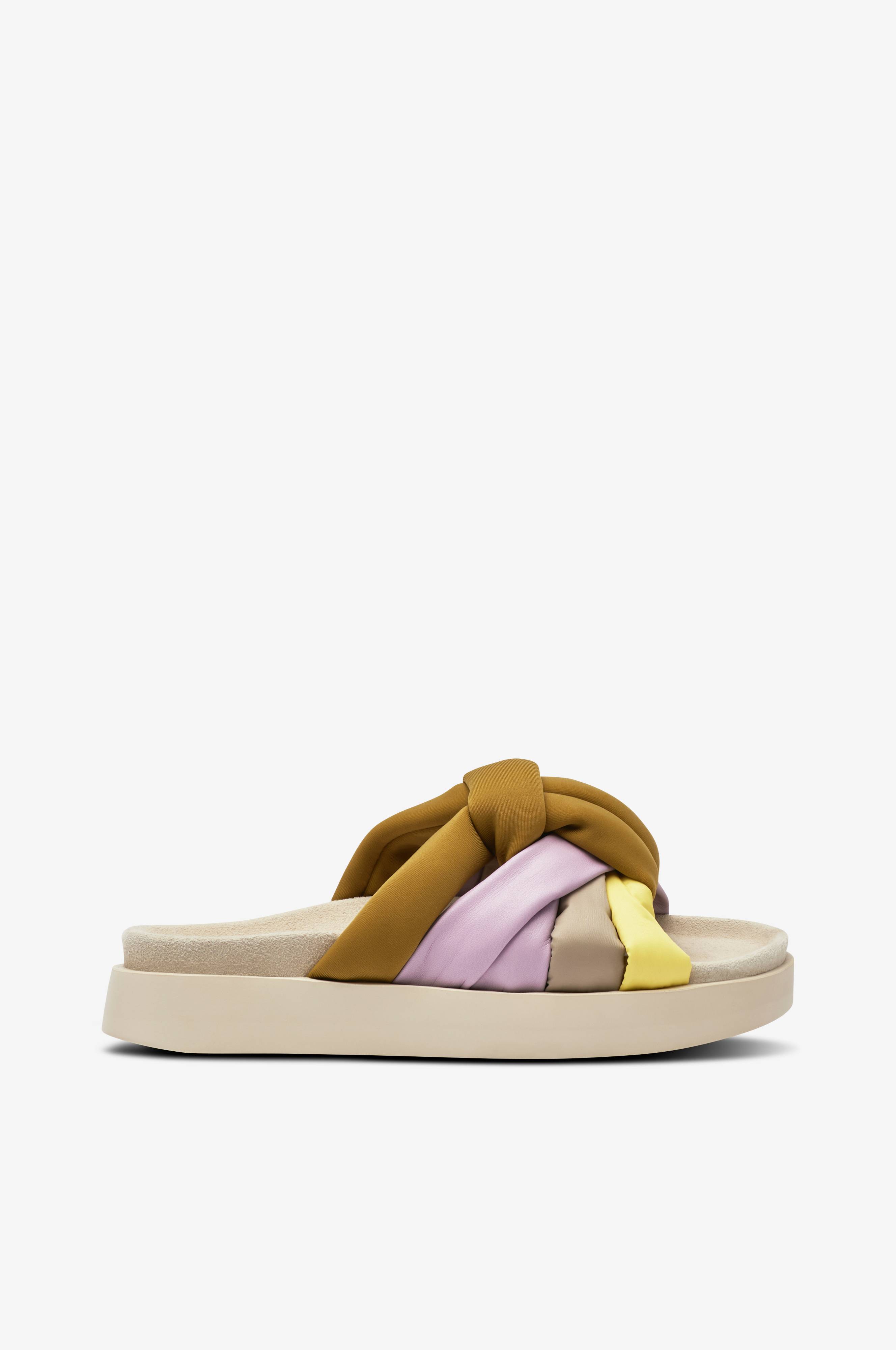 • Färgglada remmar i skinn och textil• Mockaklädd fotbädd• Något högre sula• Sulhöjd: 3,5 cm