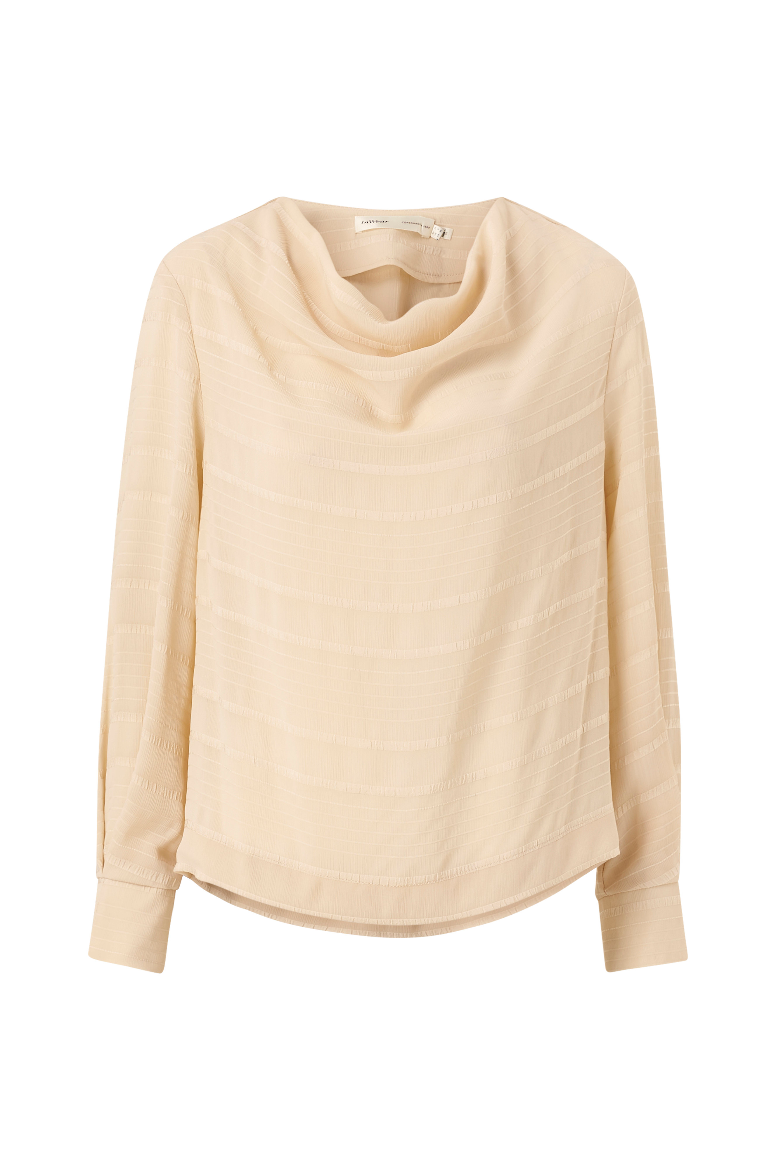 Blus PablahIW Blouse från InWear. Rak oversizemodell med drapering fram i halsen. Lång ärm med lagt veck nertill och påsydd manschett med sprund i ärmslut. Chiffong med vävda strukturränder.