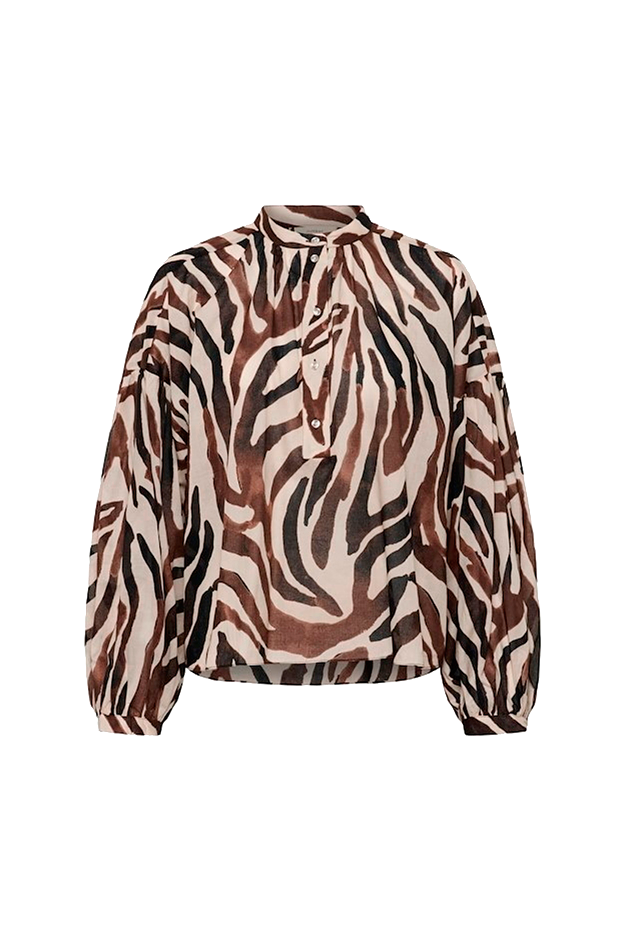 • Blus i bomull med lätt transparent material• Rund, hög halsringning• Halvlång knappslå fram• Långa puffärmar med smala manschetter i ärmsluten