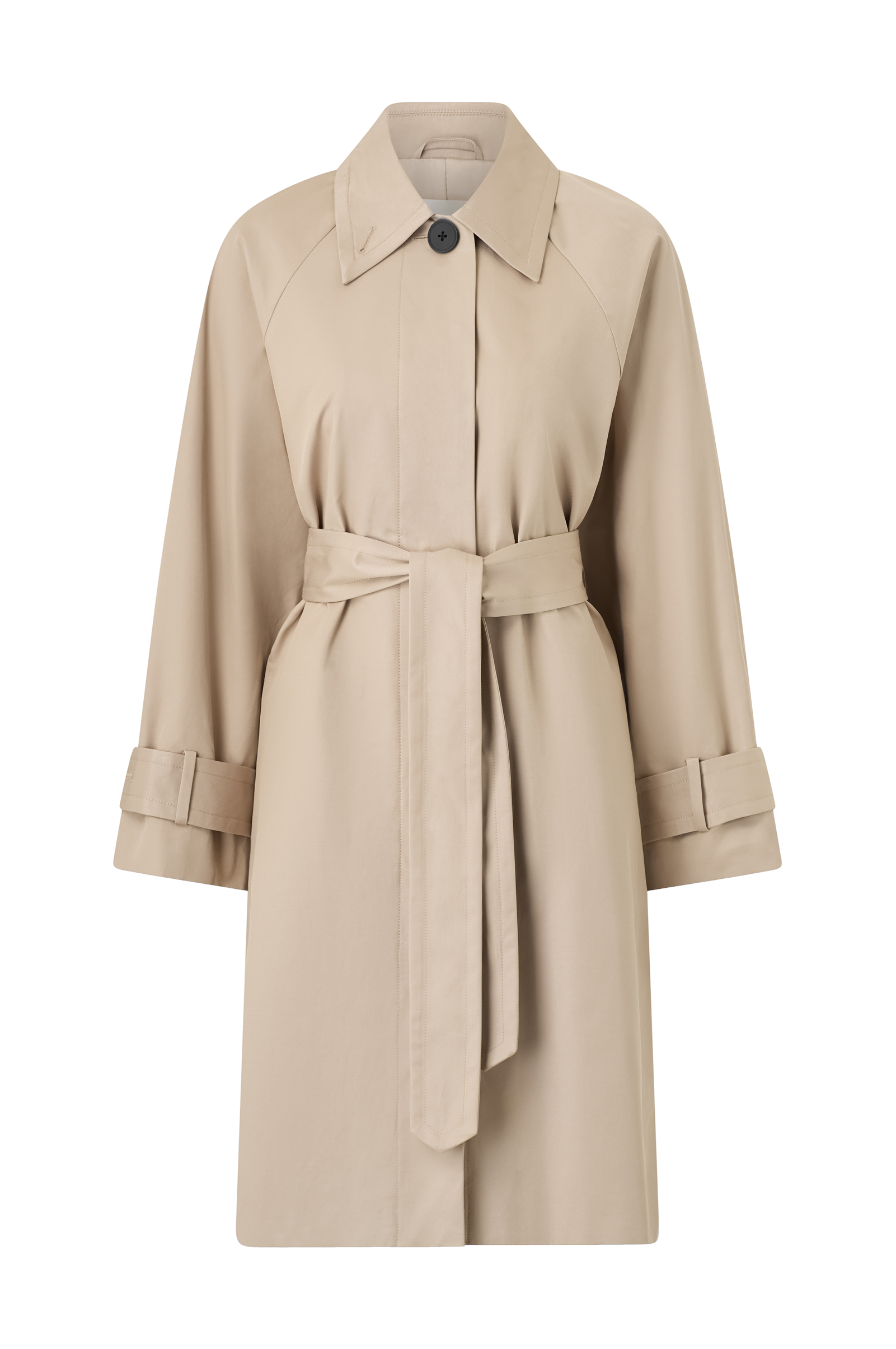 • Stilren, klassisk kappa• Dolda knappar fram• Knytskärp i midjan• Fickor i sidorna• Rem med knappar i ärmsluten• Innerficka• Slits nedtill bak• Foder i satin• Längd: 100 cm i storlek 36