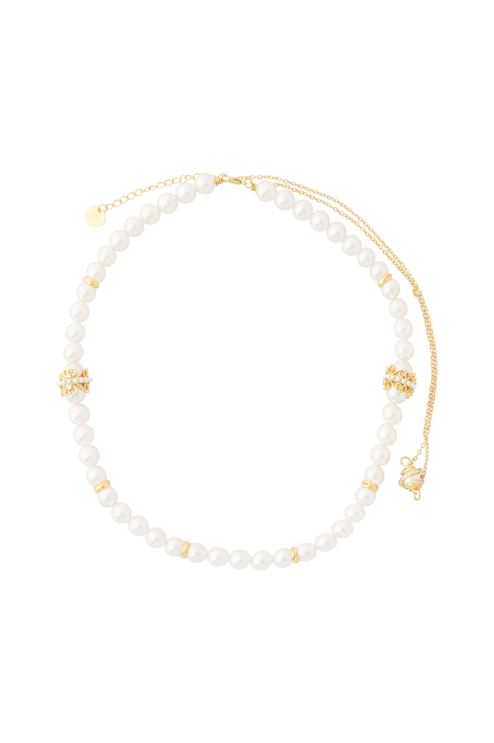 • Dubbelt, justerbart halsband• Ett pärlhalsband med dekorativa gulddetaljer• Ett tunt kedjehalsband med en dekorativ pärla• Glittrande stenar• Halsbandet kan inte separeras