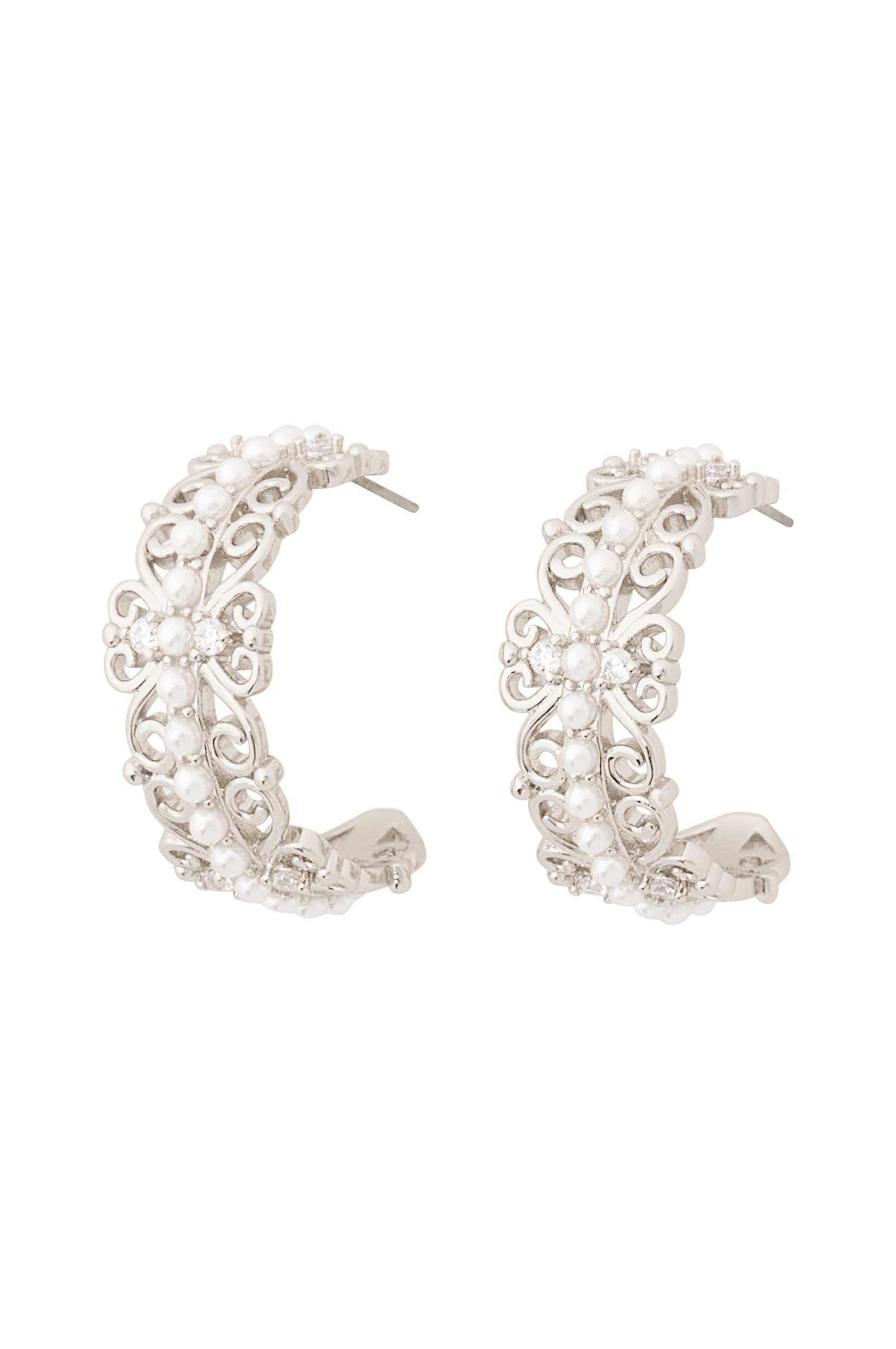 • Eleganta stiftörhängen med små pärlor och dekorativa, glittrande stenar