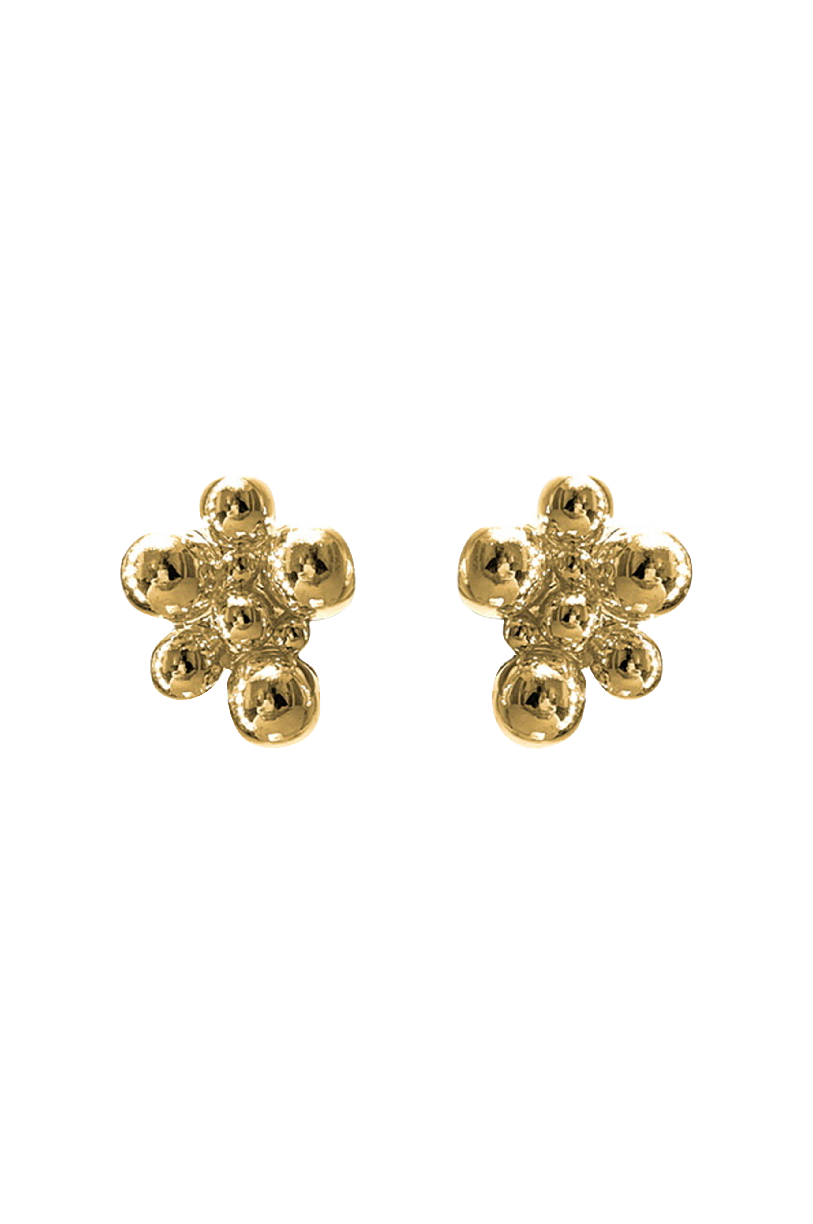 Stiftörhänge i form av Berry-bollar som dekorerar örhänget. Tillverkade i mässing med 18 k guldplätering eller silverplätering för bästa hållbarhet. Stiftet i örat är tillverkat av kirurgiskt stål. Nickel bly- och kadmiumfritt. Levereras i en exklusiv smyckesbox från IOAKU. Design av Fanny Ek.