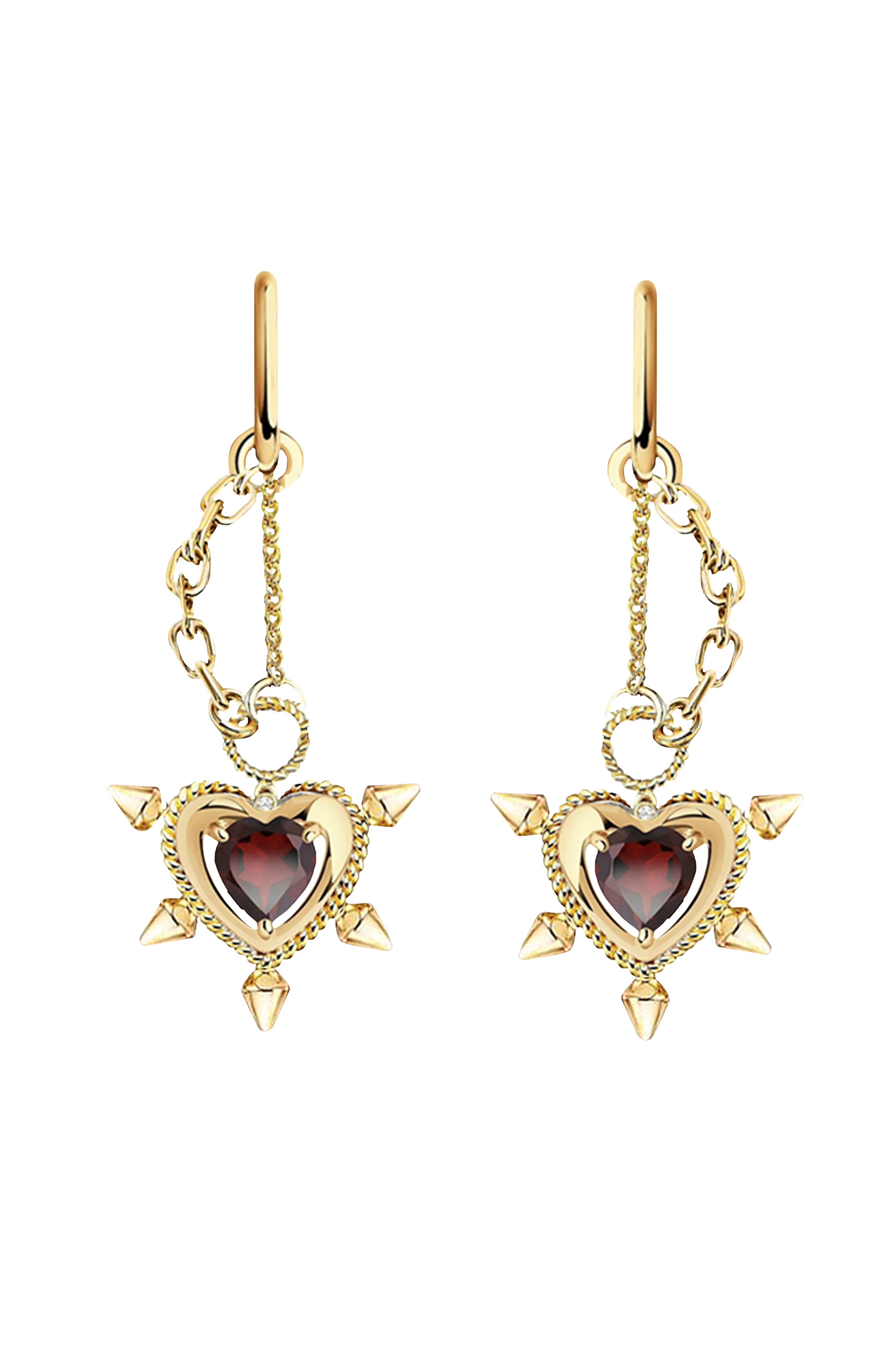 • Örhänge med dekorativa detaljer, hjärtformat hänge och dekorativ sten• Gjorda av 18K guldpläterat rostfritt stål