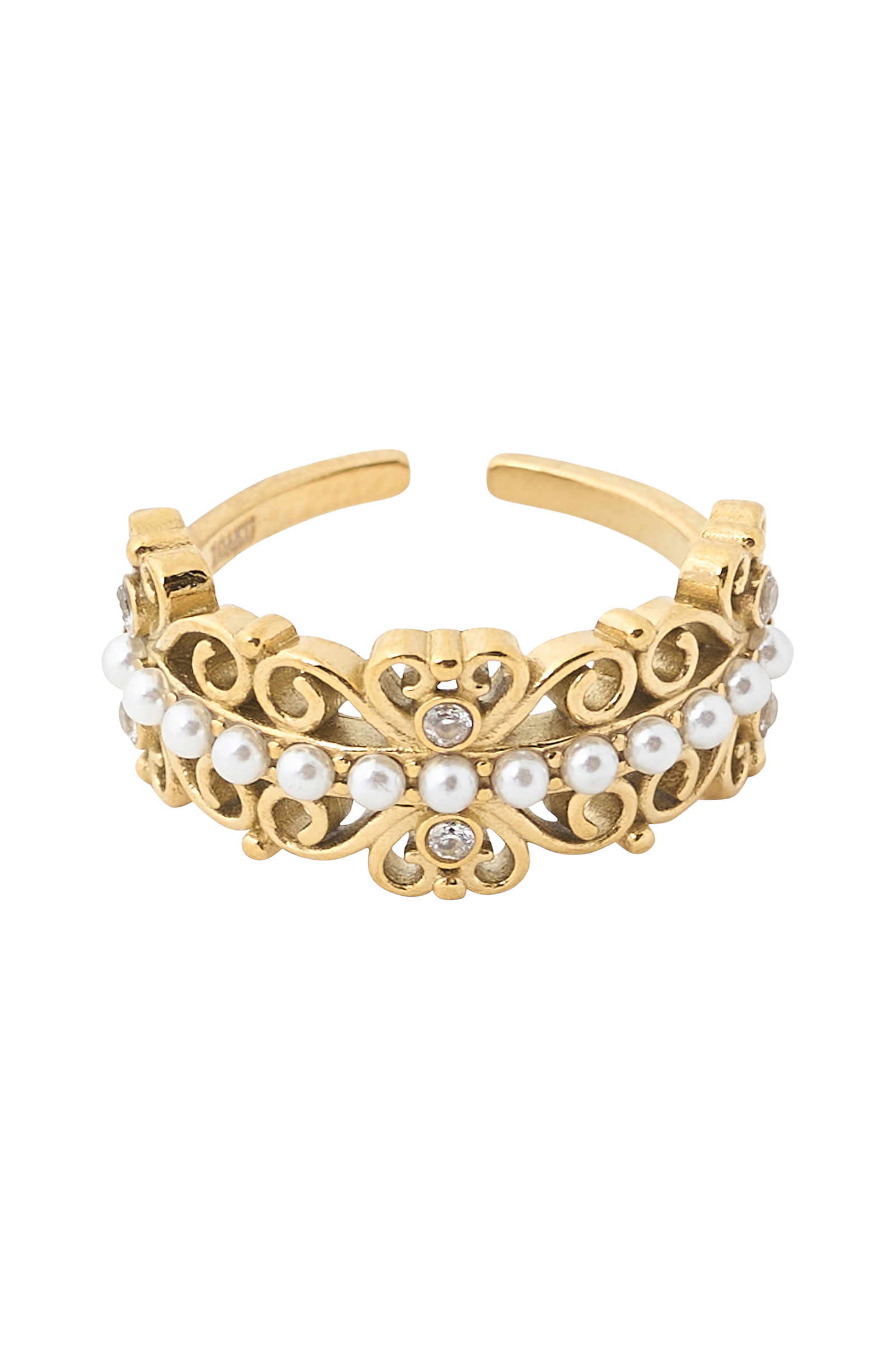 • Ring med små pärlor och dekorativa, glittrande stenar• Justerbar modell