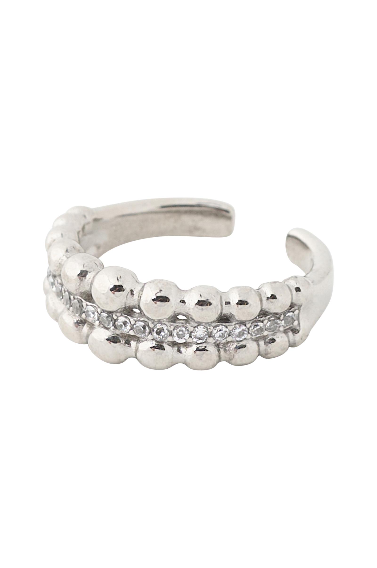 • Ring med små kulor och dekorativa, glittrande stenar
