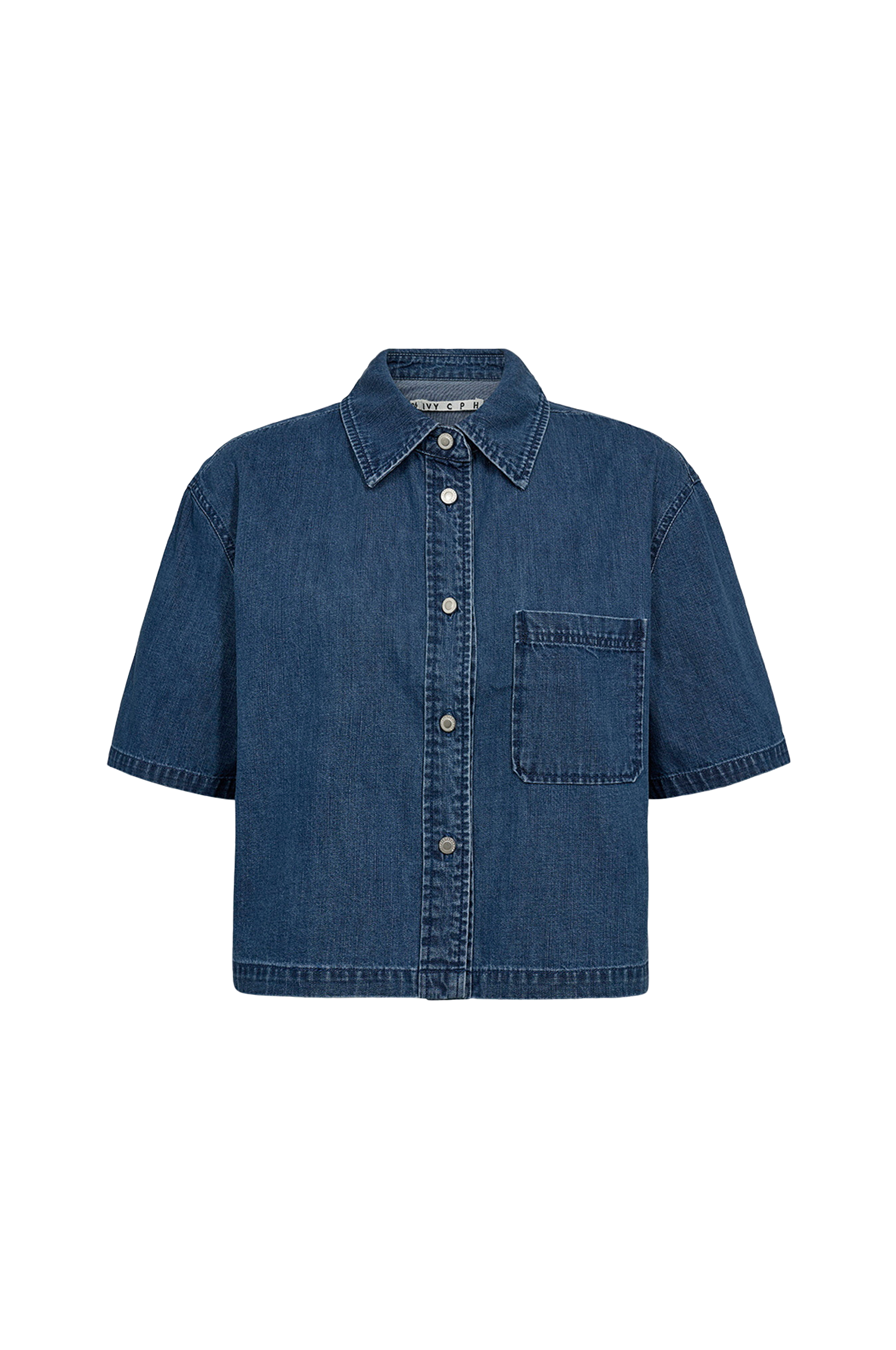 • Croppad, oversize jeansskjorta• Korta ärmar• Knappar fram• Bröstficka