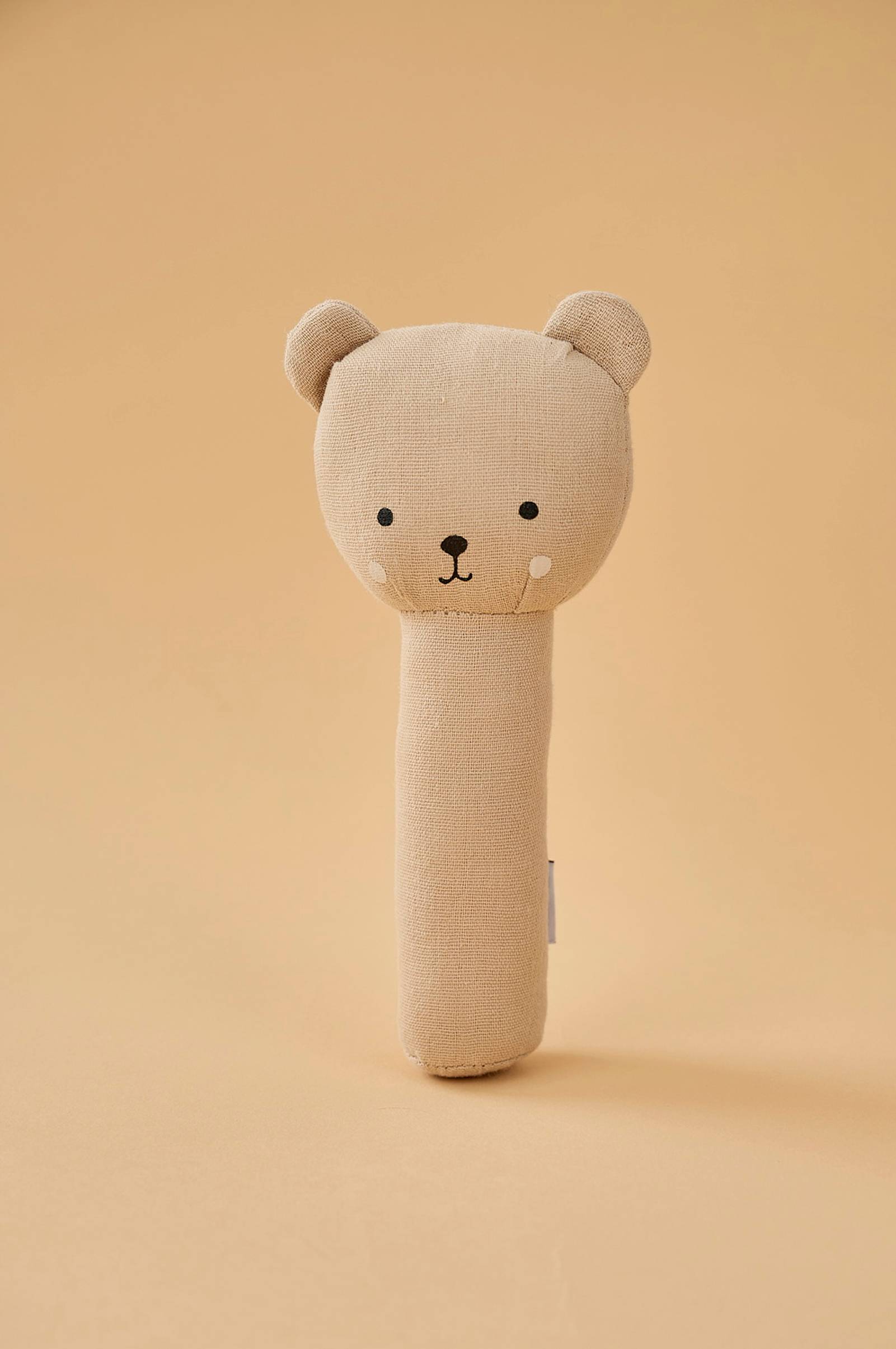 Bedårande handhållen skallra som är lätt att greppa och hålla för barnets små fingrar. Tillverkad av mjukaste textil och med ett gulligt ansikte kommer den här skallran att bli barnets favoritleksak. Det mjuka ljudet från skallran är den perfekta sinnesstimuleringen för spädbarn.