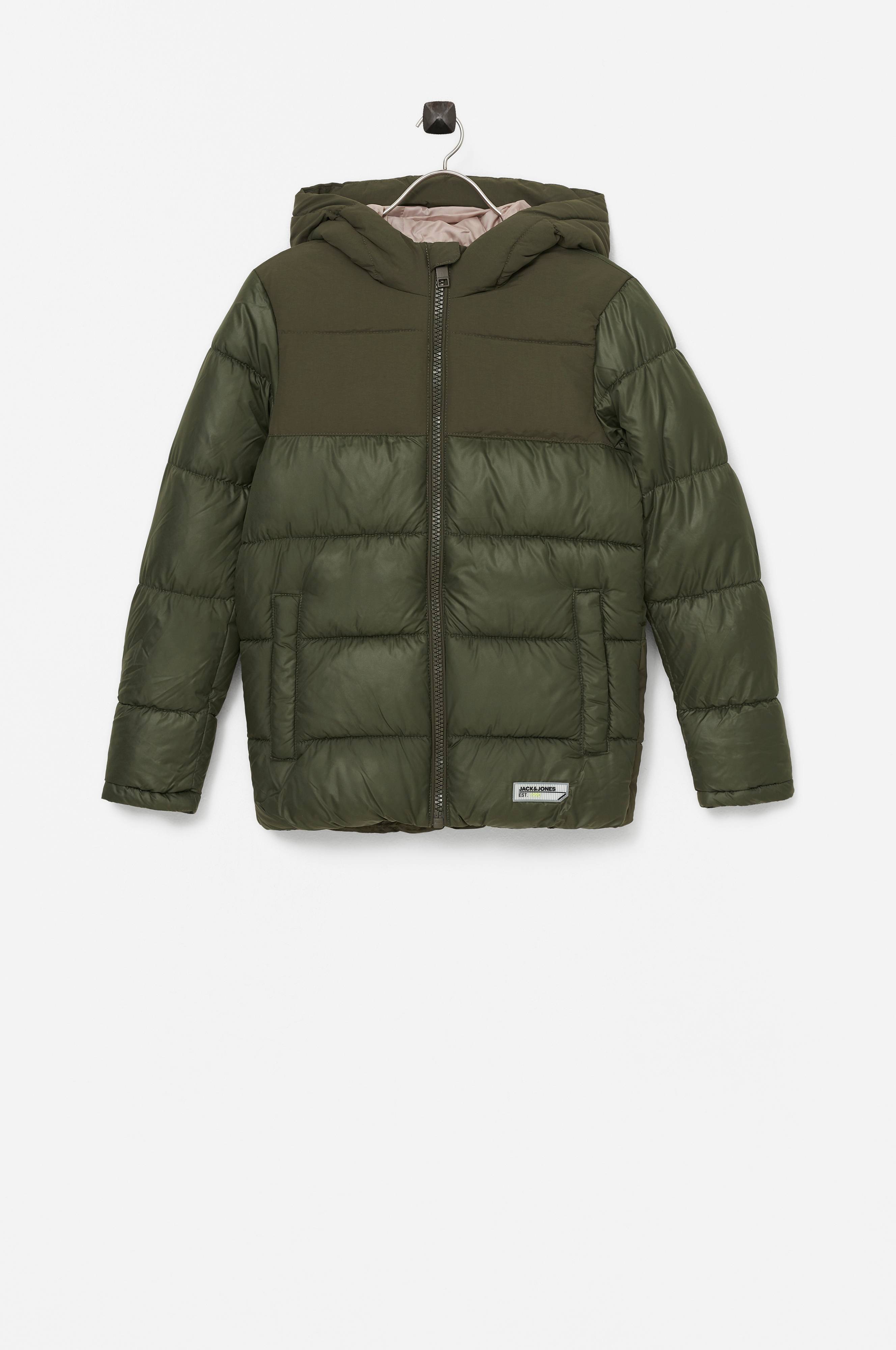 Quiltad och vadderad puffjacka med fast huva, hög krage och dragkedja. Två fickor med tryckknappstängning. En innerficka med kardborrestängning. Ribbstickade, dolda muddar i ärmsluten. Resår i nederkanten.