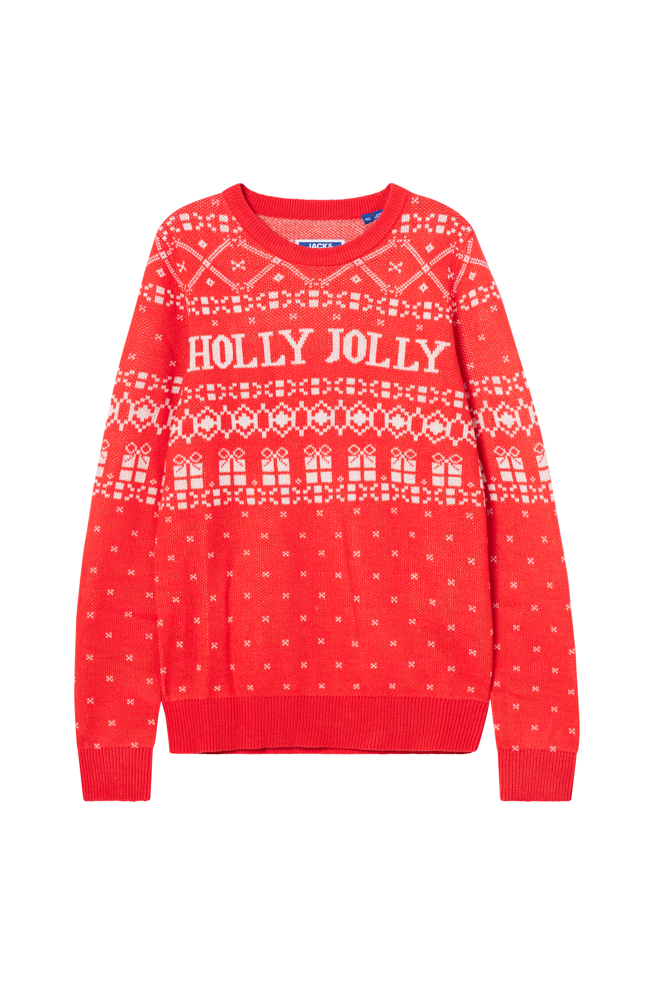 • Stickad tröja med julmönster• Ribbstickning i ärmsluten, nedtill och i halsen