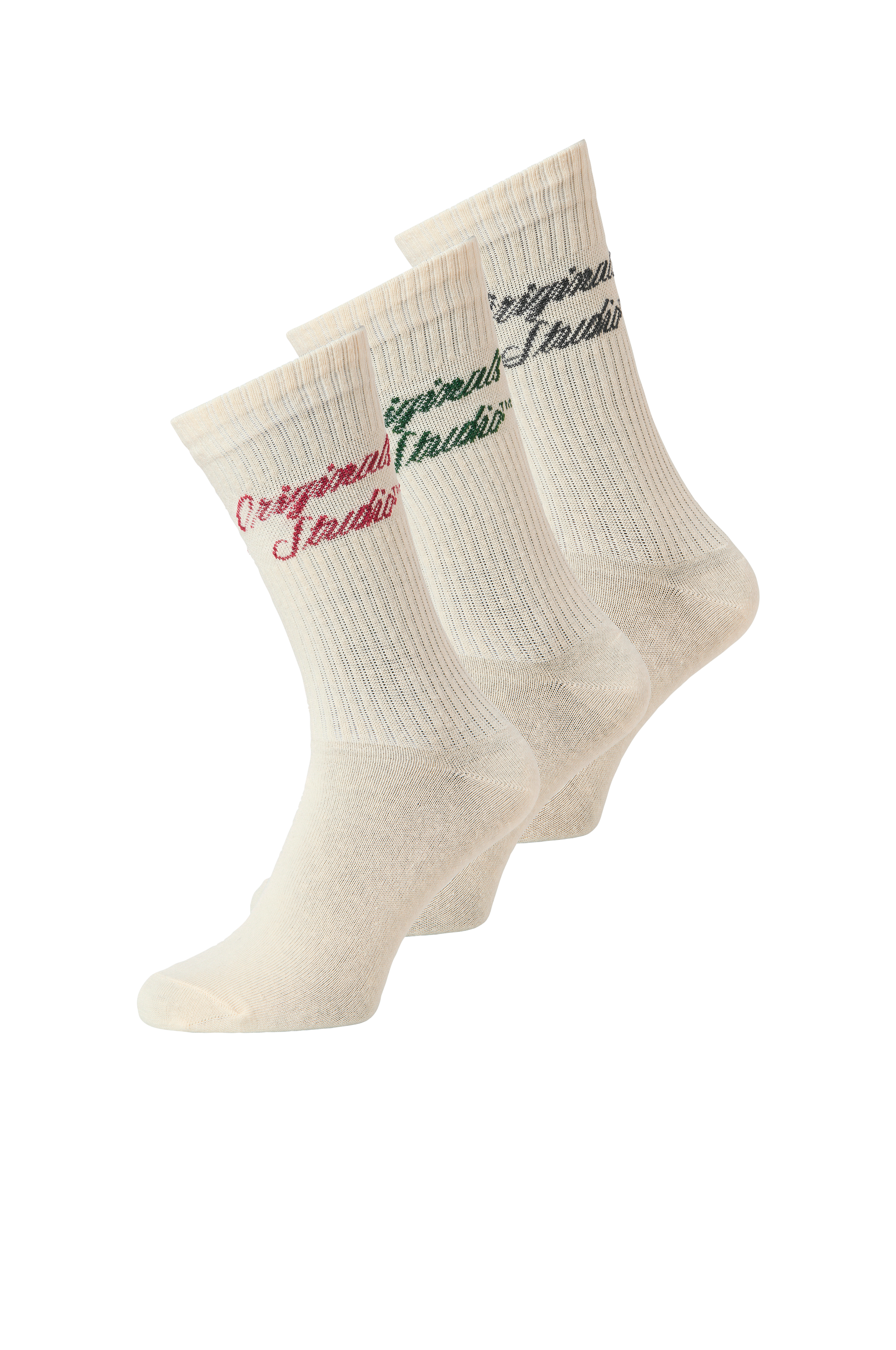 • Strumpor i bomullsmix med högt, ribbat skaft• Tre par