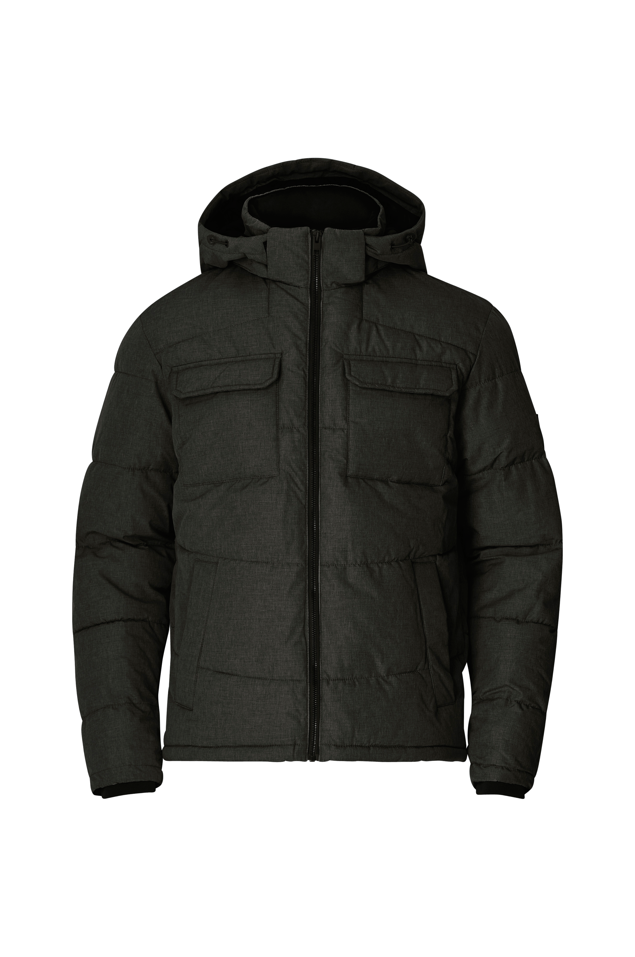 • Quiltad, vadderad jacka• Avtagbar, justerbar huva• Hög krage med borstad trikå på insidan• Två fickor med tryckknappsstängning• Två bröstfickor med tryckknappsstängning• En innerficka• Ribbmuddar i ärmsluten