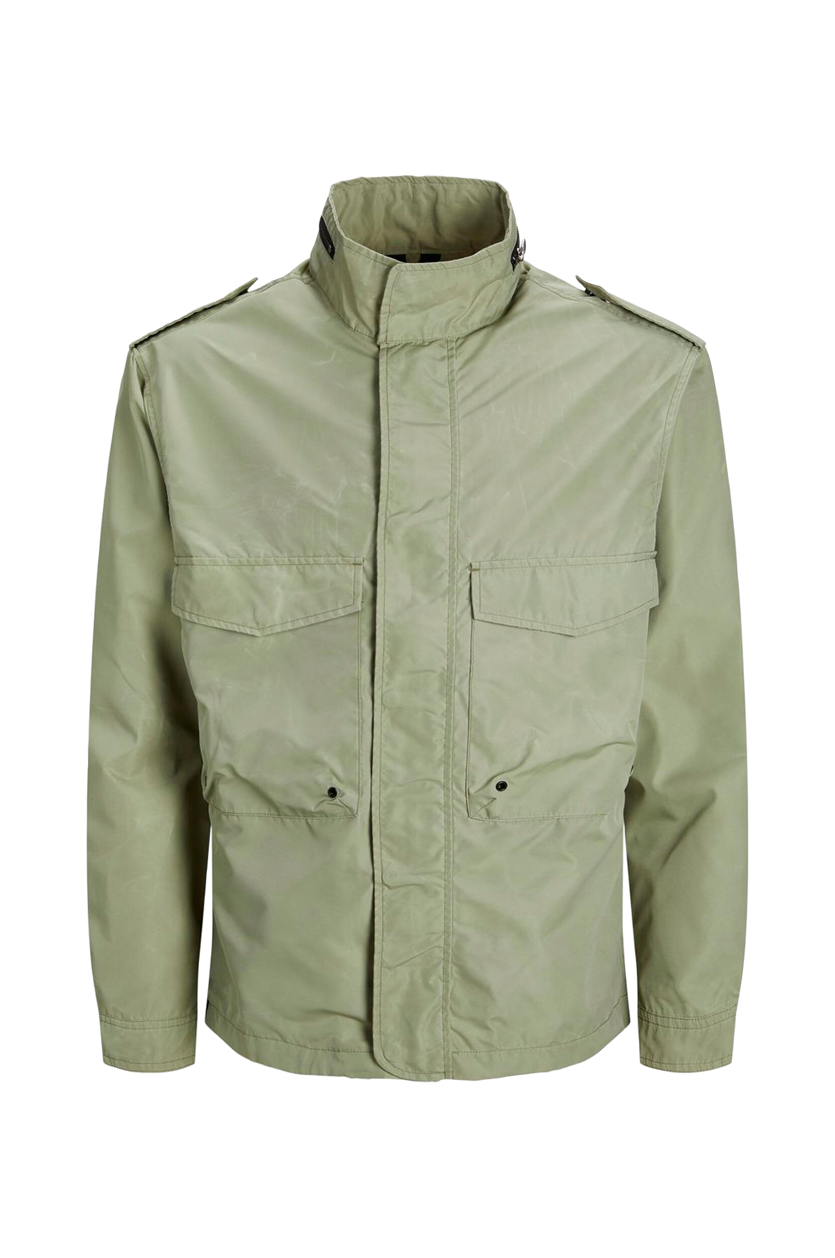 • Hög krage med en dekorativ dragkedja och en tvåvägsdragkedja• Vindslå med tryckknappar• Sidfickor med tryckknapp• Två bröstfickor med knäppbara lock• En innerficka• Justerbara ärmslut• Dragsko i nederkanten• Längd: 70 cm i storlek M