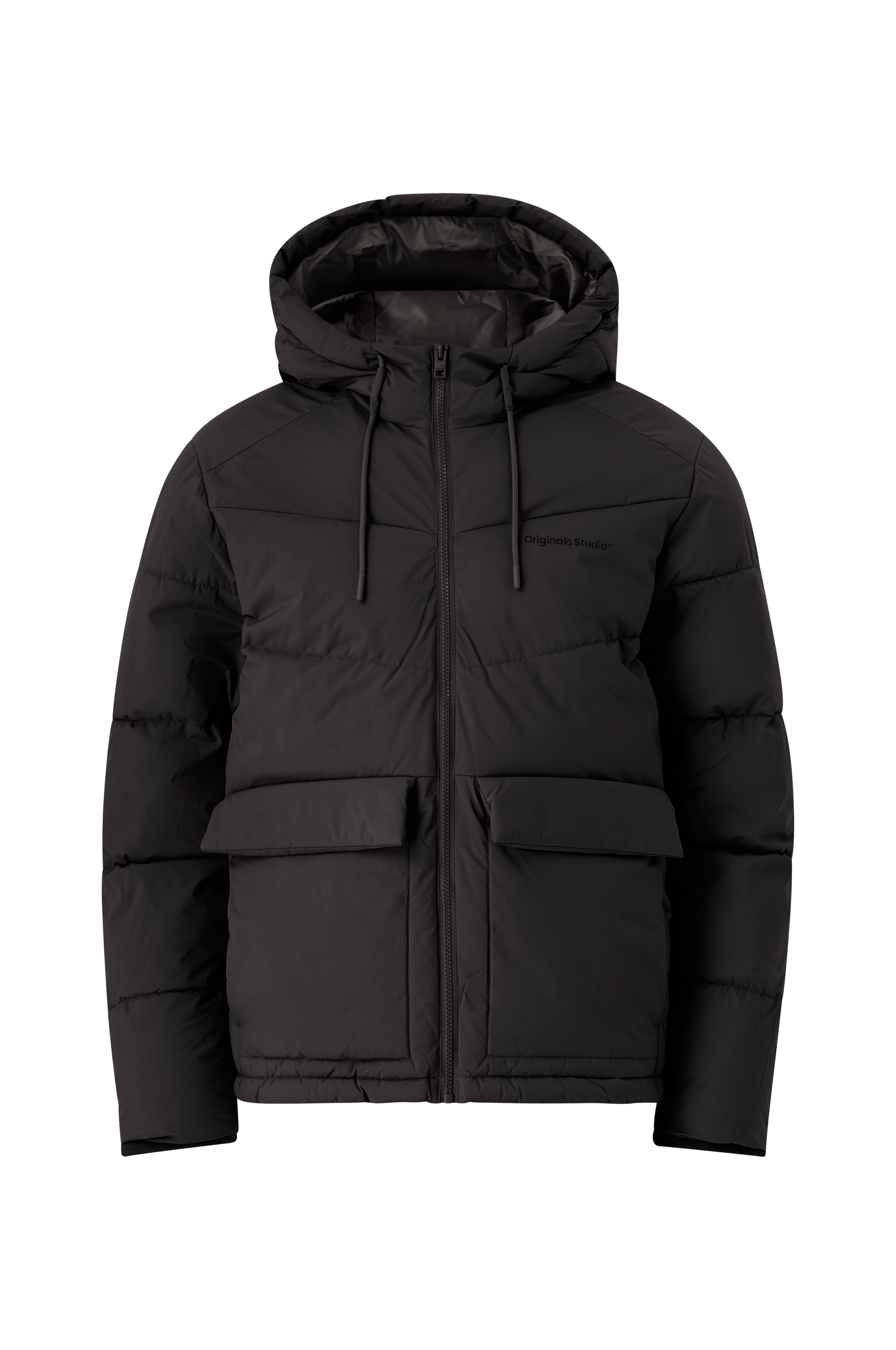 • Quiltad, vadderad pufferjacka• Vattenavvisande yttertyg• Fast huva med dragsko• Dragkedja• Sidfickor• Två fickor med knäppbara lock• En innerficka med kardborrestängning• Ribbmuddar i ärmsluten• Längd: 73 cm i storlek M