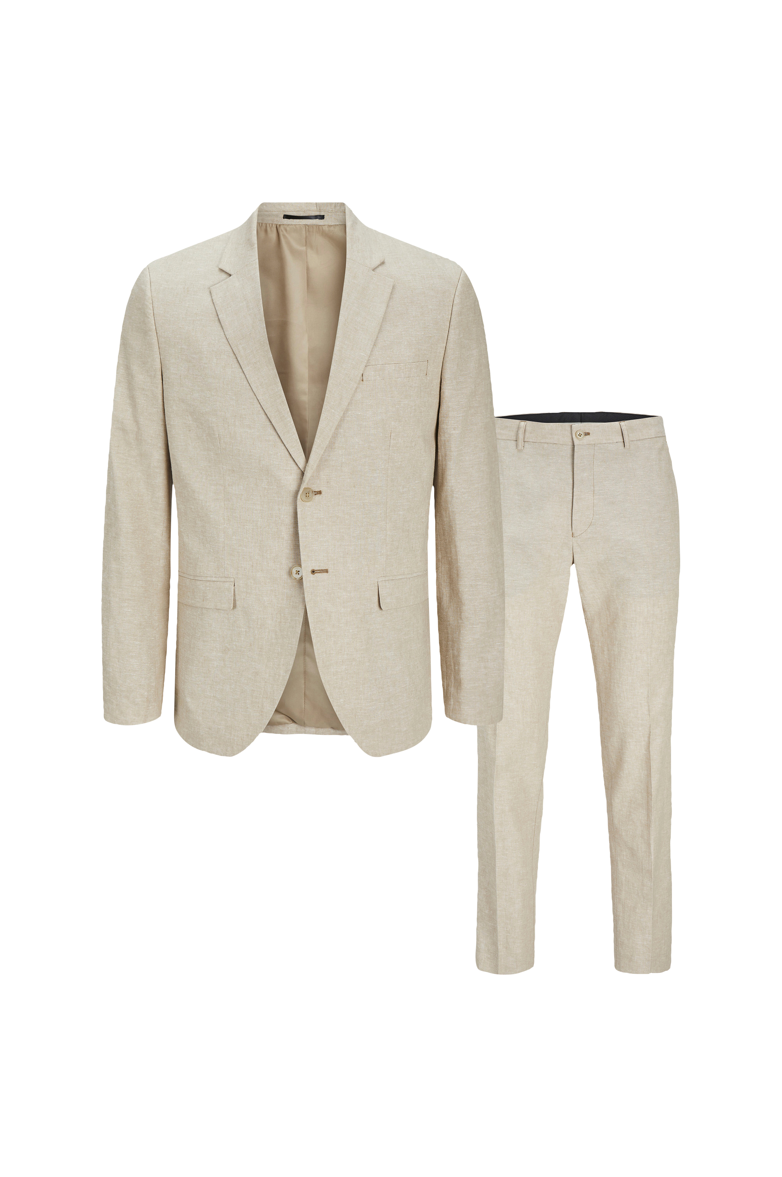 • Kostym i linnemix med smal passform• Kavaj med knappar• Två fickor med ficklock och en bröstficka• En innerficka• Byxor med sidfickor och två bakfickor• Dragkedjegylf