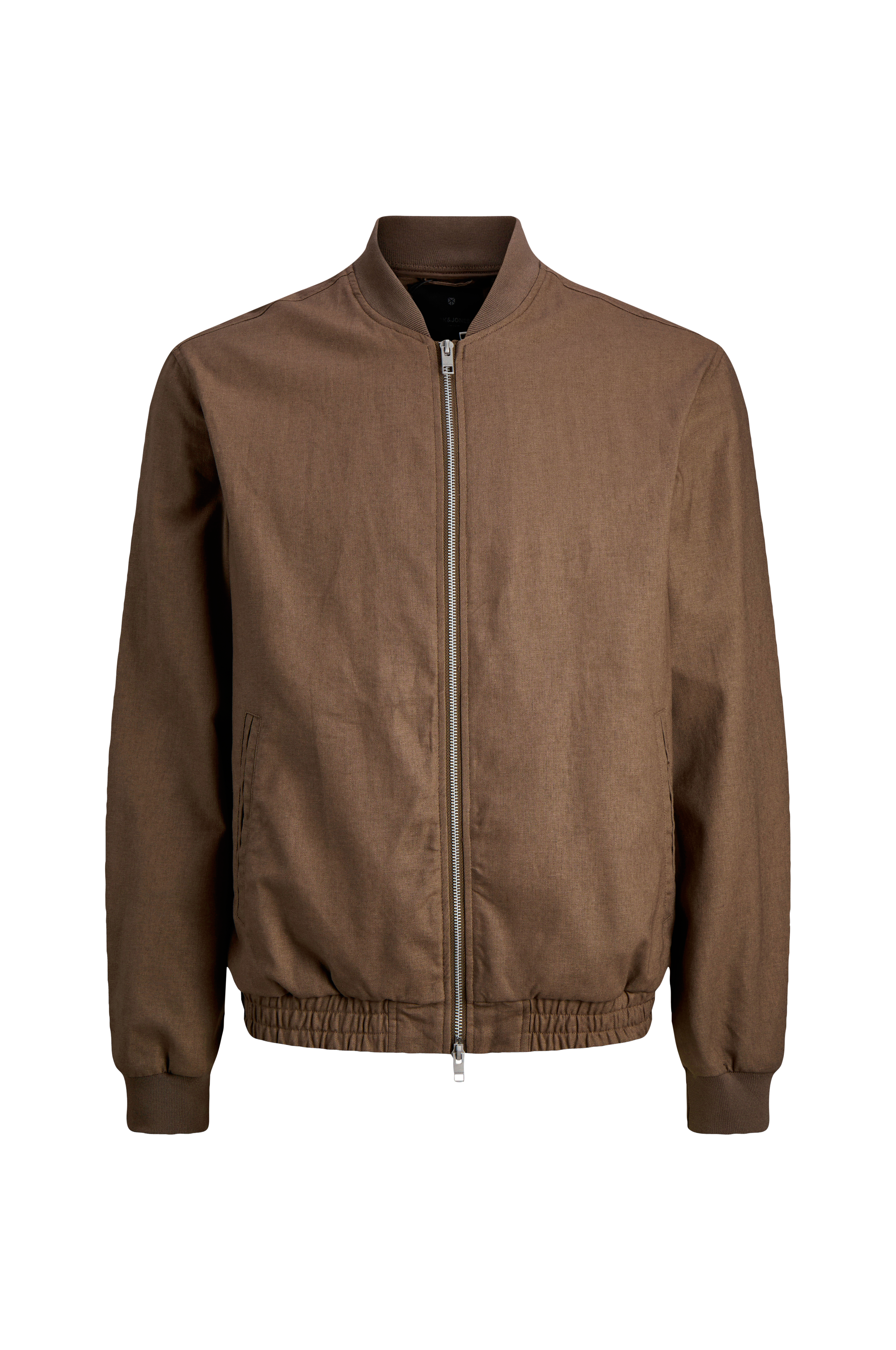 • Bomberjacka i linnemix• Ribbad krage• Ribbmuddar i ärmsluten• Dragkedjestängning• Sidfickor• Elastisk nederkant• Längd: 69 cm i storlek M