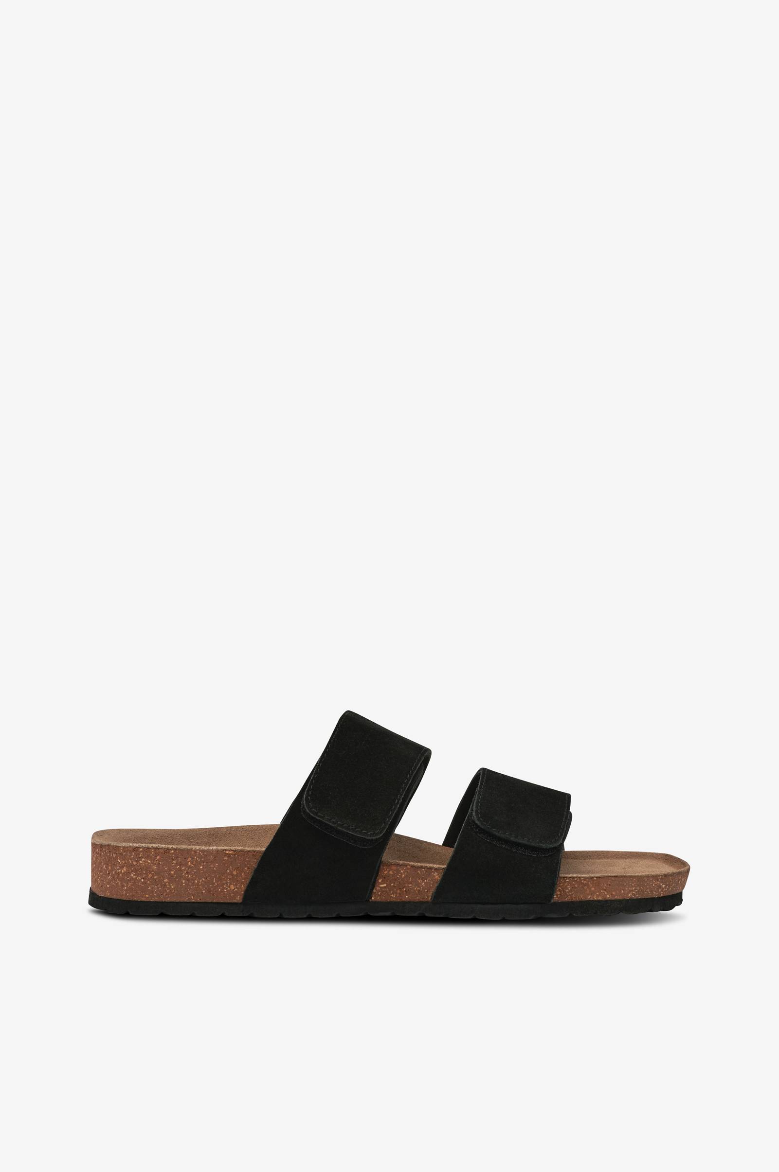 • Sandaler i mocka• Två remmar med kardborrestängning• Mockaklädd fotbädd