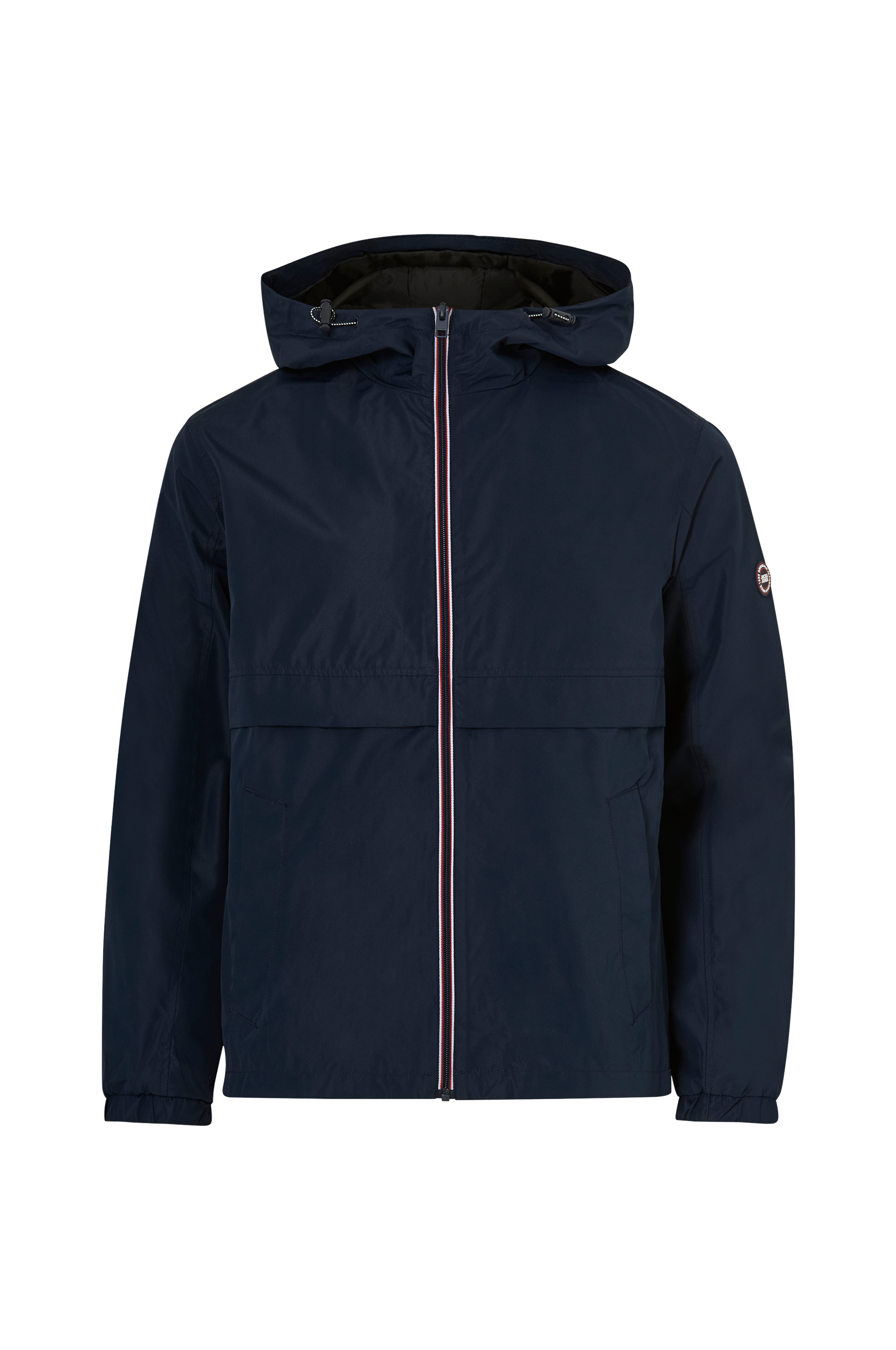 • Tunn vindjacka med vattenavvisande yta• Fast huva med dragsko• Dragkedja• Två fickor med tryckknappsstängning• Resår i ärmsluten• Tryckt logga på ryggen• Längd: 70 cm i storlek M