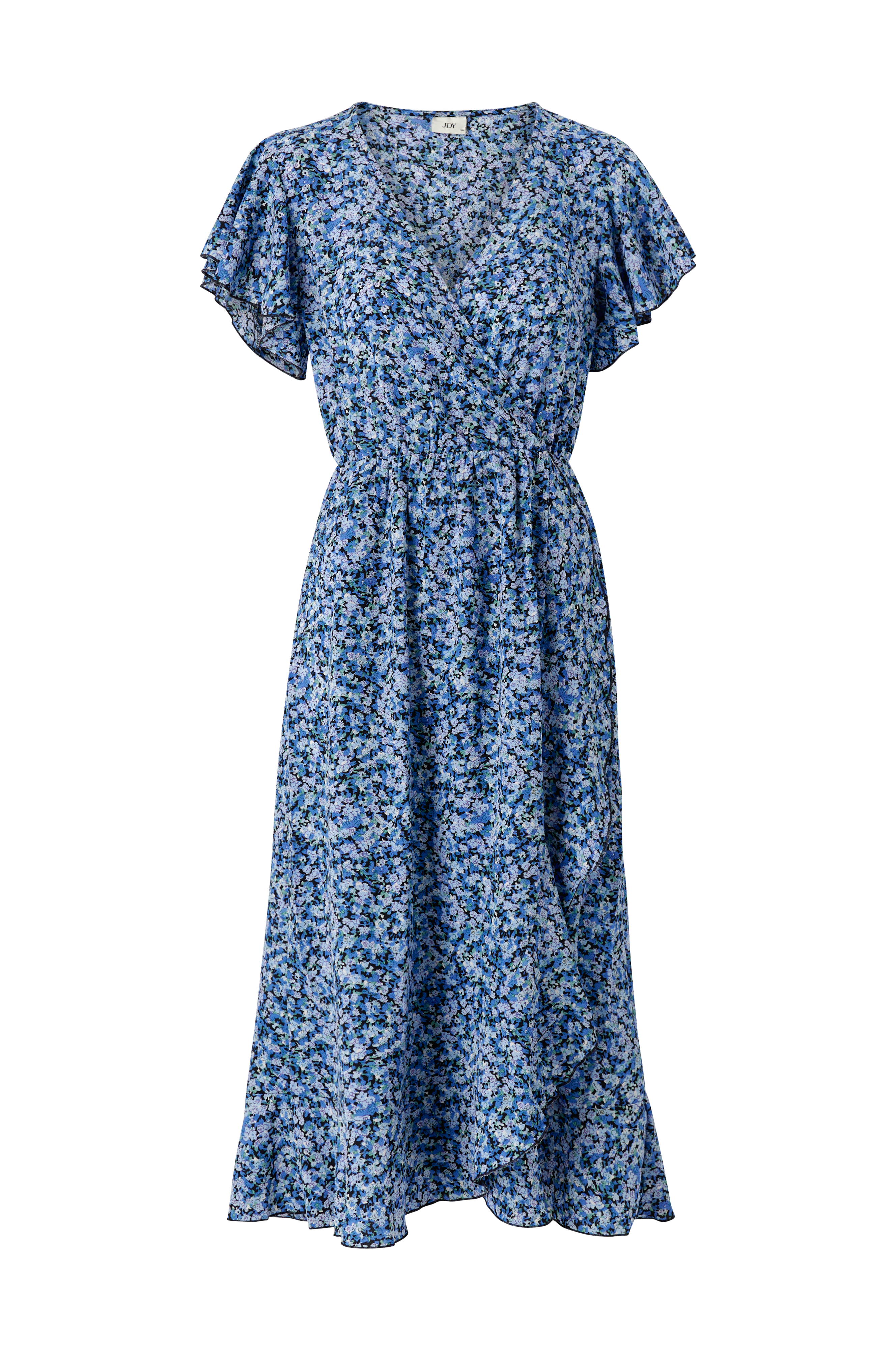 • Omlottmodell• Kort, klockformad ärm• Elastisk midja• Volang i sidan och i nederkanten• Längd: 120 cm i storlek 36