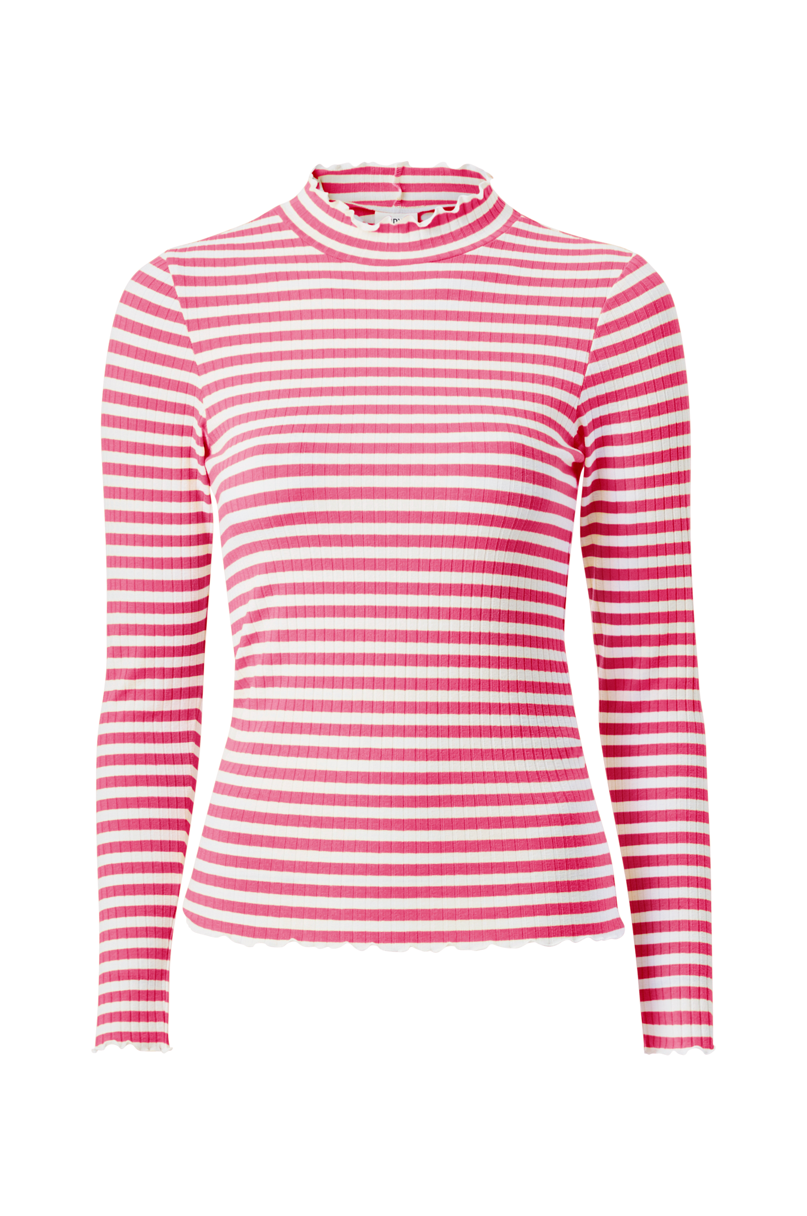 • Vågig kant i ärmsluten och nedtill