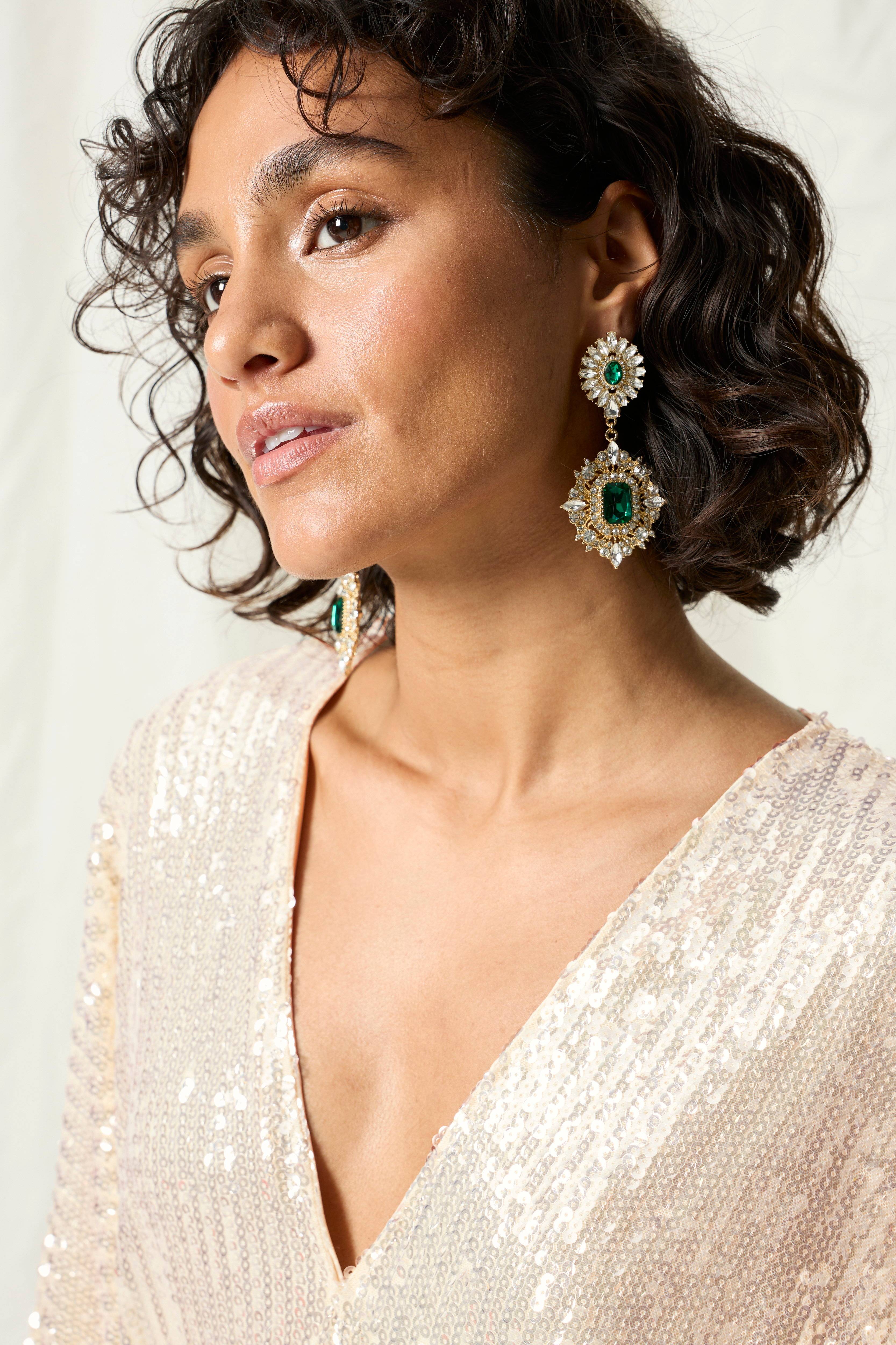 • Stora, hängande örhängen med strass och gröna glasstenar• Gnistrande, festlig design• Längd 8 cm• Bredd 4 cm