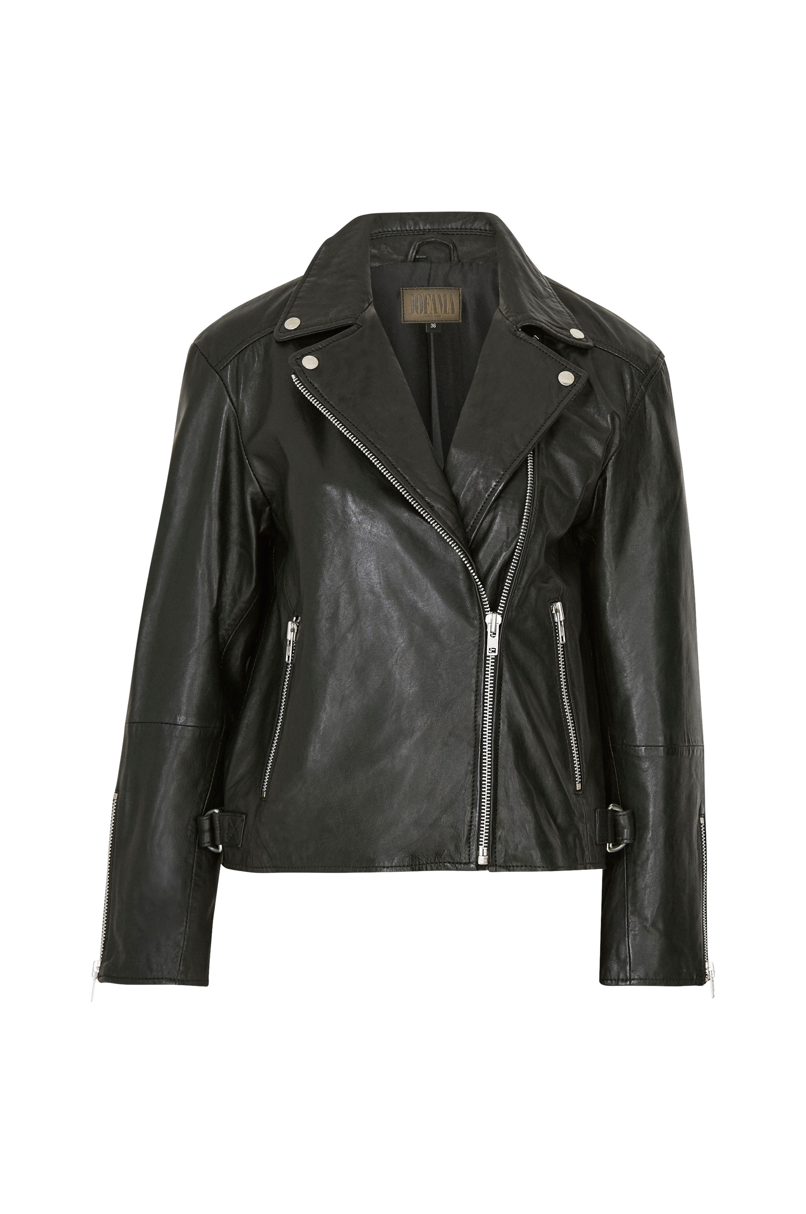 Skinnjacka i bikermodell, gjord i mjuk lammnappa. Oversizemodell med nedhasade axlar.