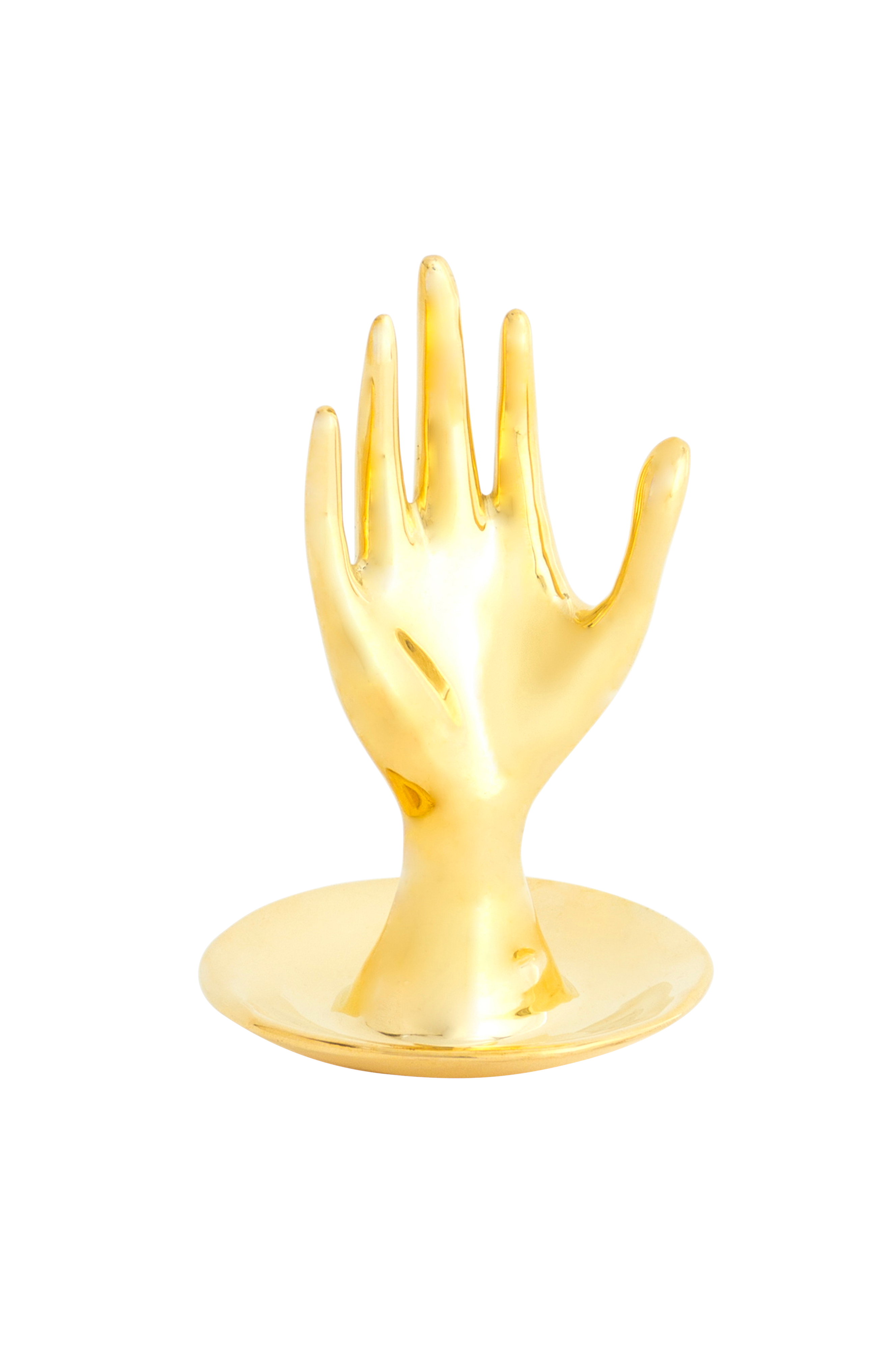 Den här graciösa handen passar perfekt för glittriga ting. Fin present till väninnan som uppskattar lite Park Avenue-glamour. Perfekt att ställa på sängbordet. Av mässing. Höjd 15 cm, diam 10 cm.