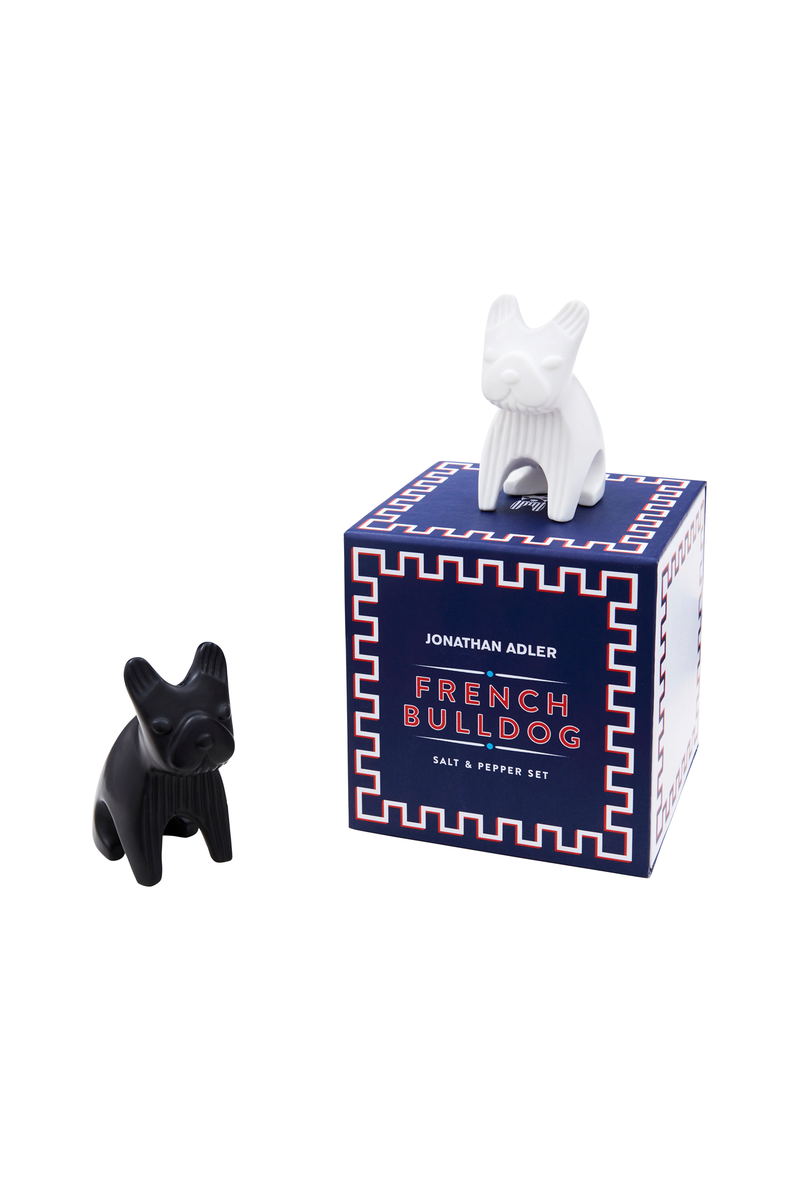 Bedårande salt- & pepparkar i formen av en svart och en vit fransk bulldog. De är tillverkade i glansig keramik och kommer förpackade i en fin presentförpackning. Måtten är 3x4x7 cm och får endast handdiskas.