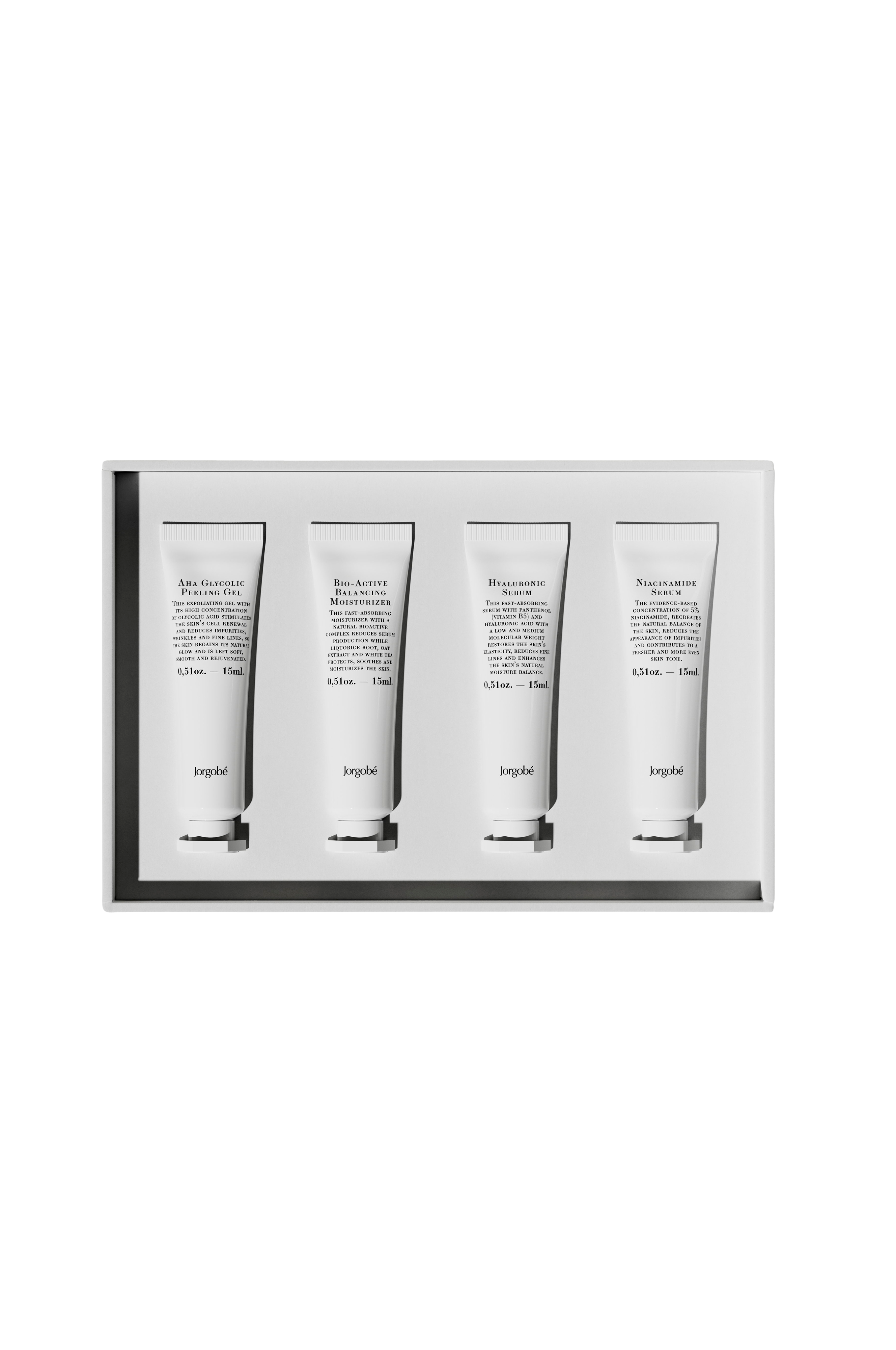 Vill du prova en ny hudvårdsrutin, ha effektiva hudvårdsprodukter i smidig resestorlek eller ge bort en garanterat uppskattad present? Discovery Set innehåller fyra av Jorgobés bästsäljande produkter – Niacinamide Serum, Hyaluronic Serum, Bio-Active Balancing Moisturizer och AHA Glycolic Peeling Gel som bidrar till en hud som både mår och ser bättre ut!